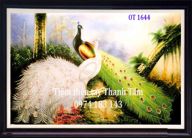 Tranh thêu chim công thể hiện sức mạnh vô tận của trái đất, của thiên nhiên biểu tượng cho sức mạnh cơ hội mới. Treo một bức tranh chim công hay một chiếc bình cắm lông công trang trí huy hoàng là biện pháp xua đi luồng khi xấu mang lại vượng khí cho văn phòng lại đẹp về mặt thẩm mỹ.