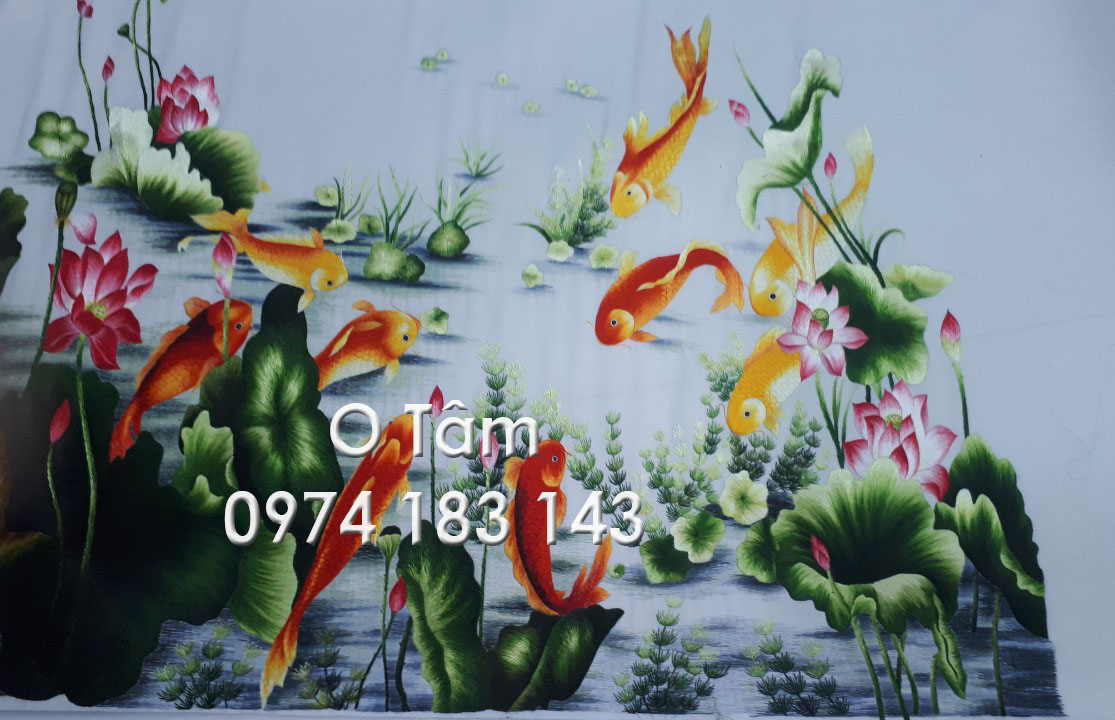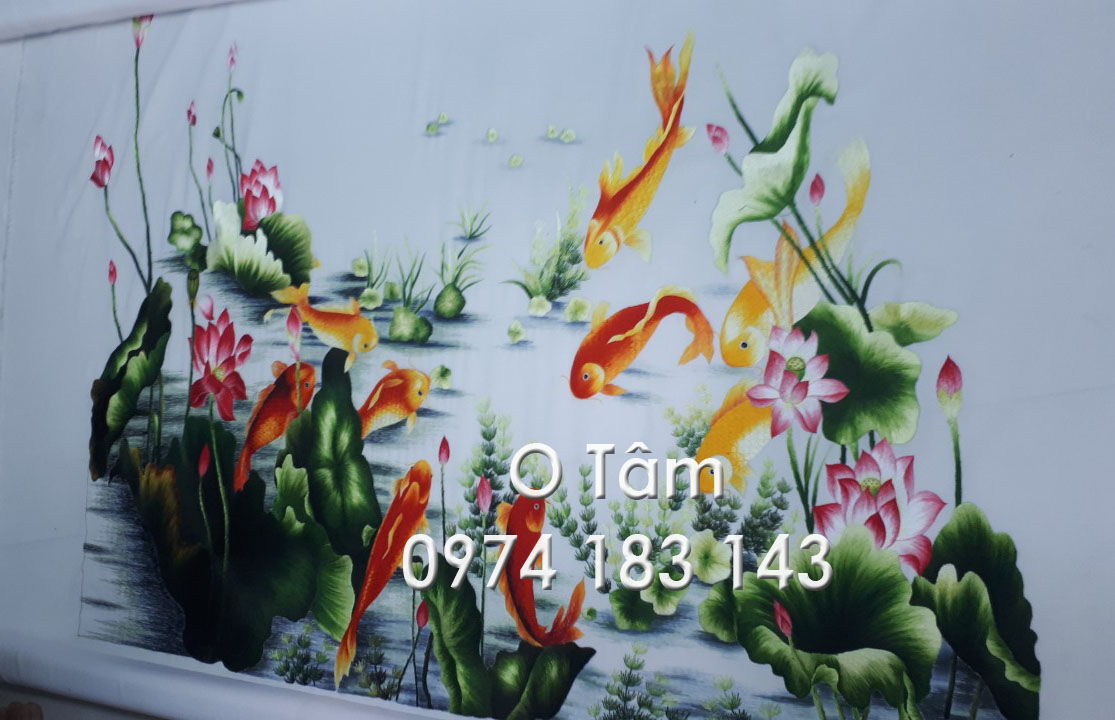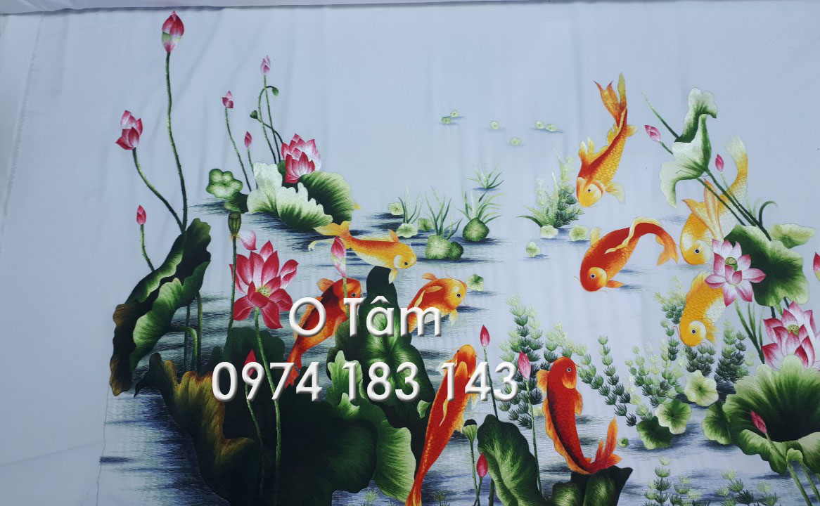 Tranh thêu cá chép hoa sen thực hiện theo yêu cầu của ngân hàng Viettinbank chi nhánh Trường Chinh (Tân Bình- HCM)