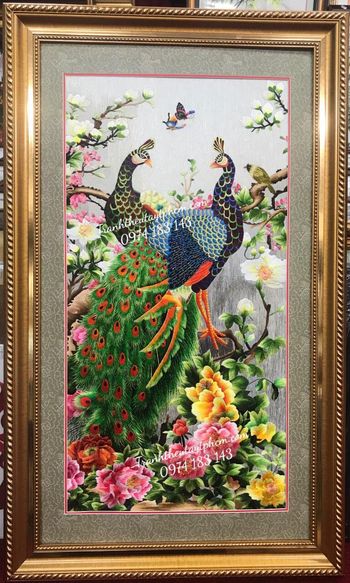 Tranh thêu chim công được khách hàng chị Lan Anh chọn mua