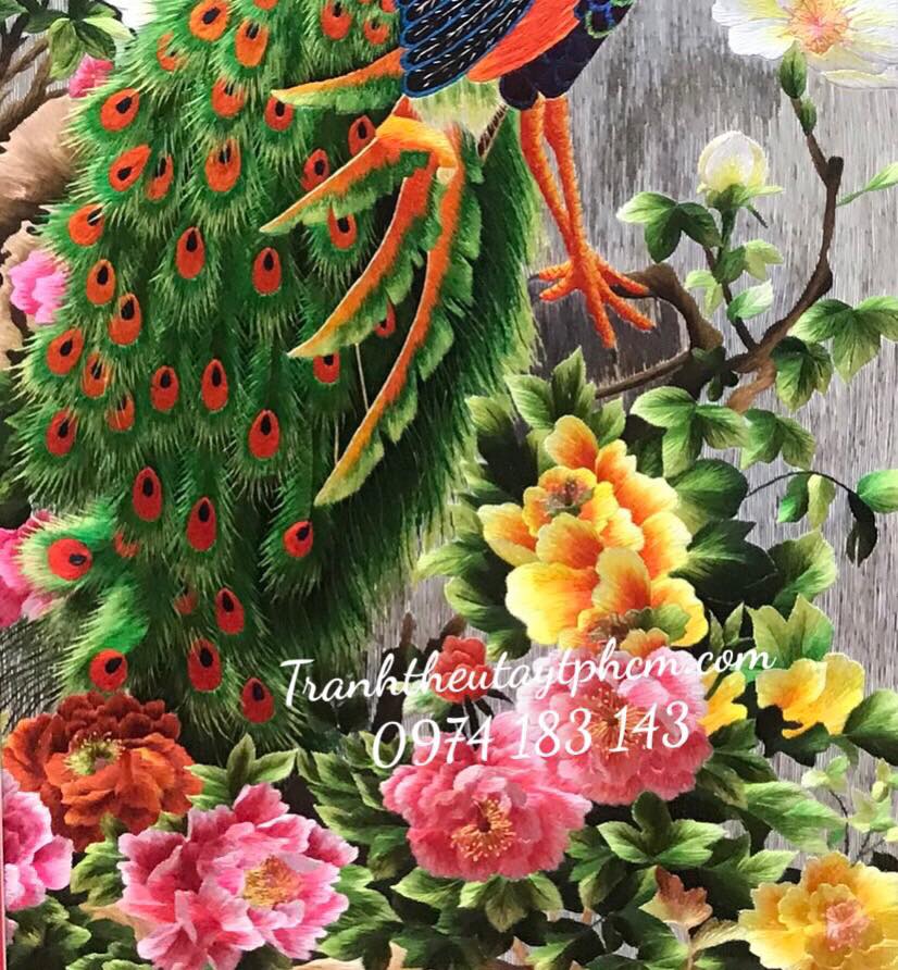 Tranh thêu chim công treo phòng ngủ theo mẫu của anh chị Lan Anh ở Nguyễn Đình Chiểu, Quận 3, TPHCM 🥰