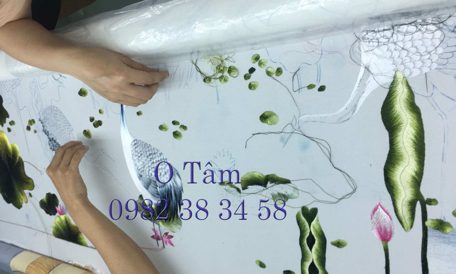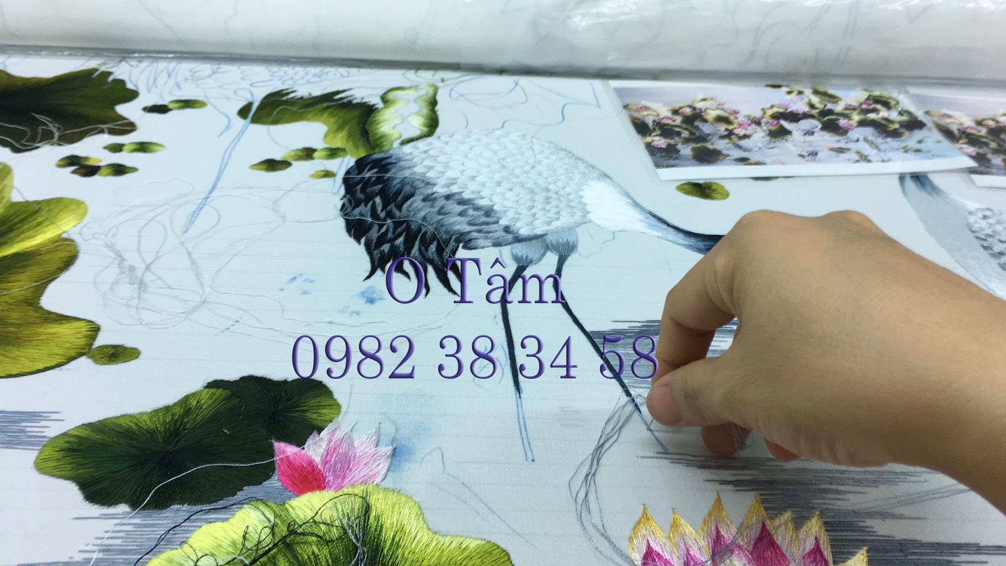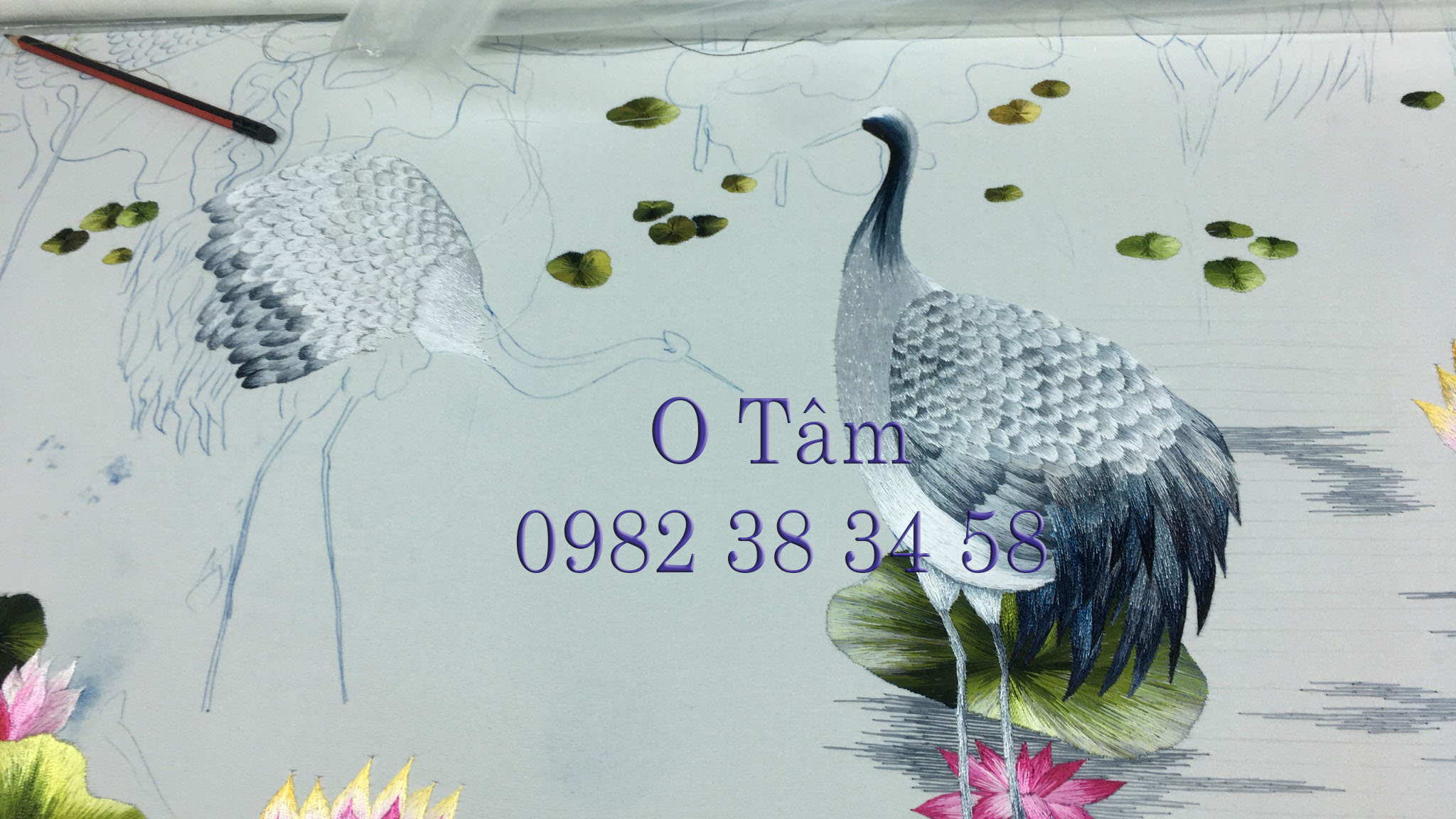 TRANH THÊU CHIM HẠC HOA SEN THEO YÊU CẦU ANH HOÀNG Ở CỦ CHI TPHCM