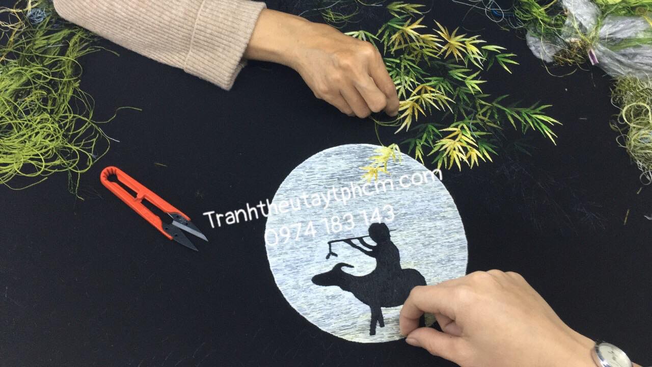 Hoàn thành tác phẩm tranh thêu đồng quê theo ý của anh Khải ở Mỹ.