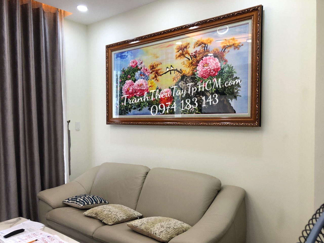 Tranh thêu hoa mẫu đơn được anh Tuấn chọn làm quà tặng chị gái ở Quận 2, TPHCM