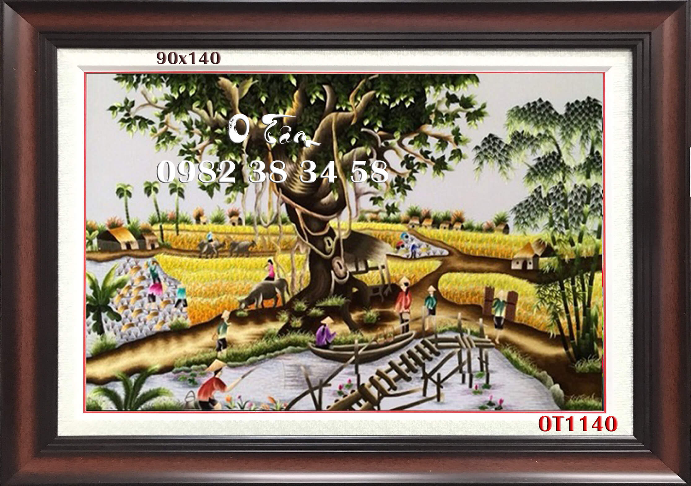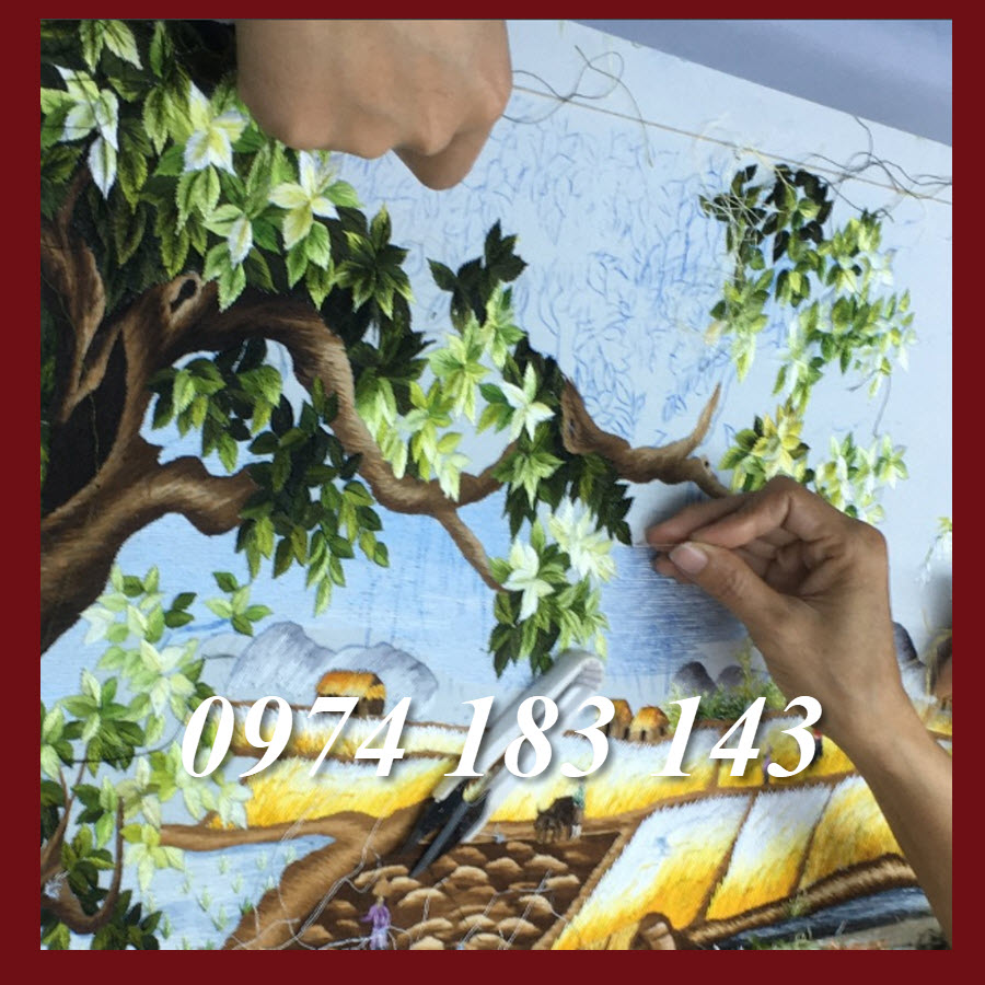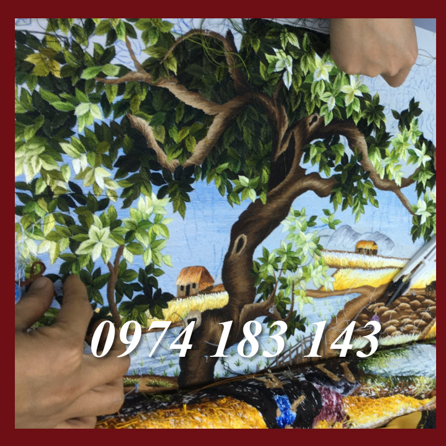 Tranh thêu làng quê Việt Nam được các nghệ nhân thêu bằng chỉ tơ trên nền vải lụa, thêu 100% bằng tay.