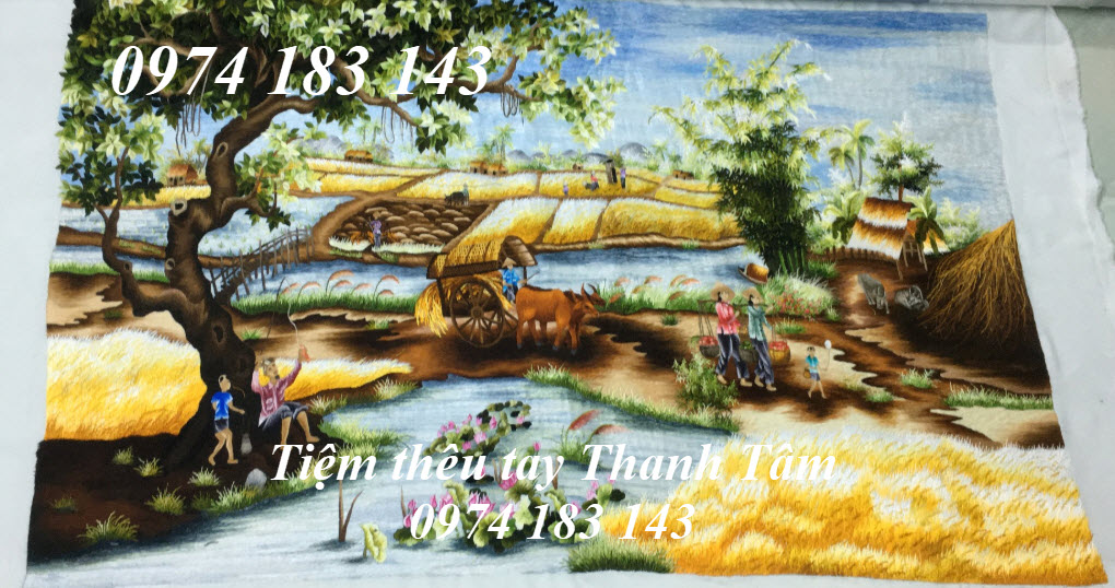 Chính vì những điều đó mà cô Nguyệt đến từ Thảo Điền, quận 2, TPHCM đã tìm đến tiệm thêu tay Thanh Tâm để đặt thêu tác phẩm tranh thêu làng quê mà cô yêu thích. Tác phẩm có đầy đủ những hình ảnh của một làng quê trong ký ức hồi nhỏ của cô.
