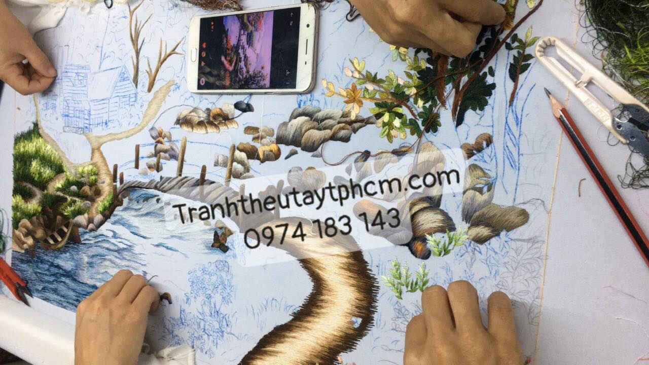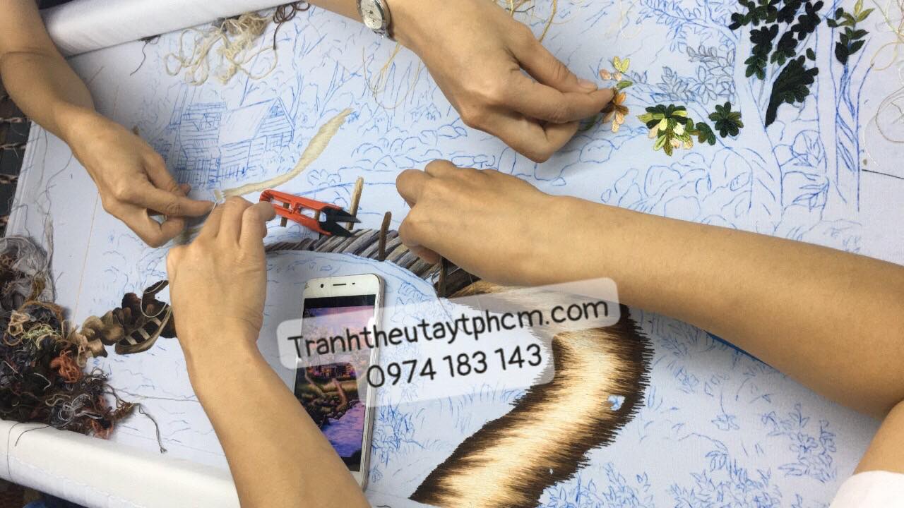 Mời các bạn cùng chiêm ngưỡng quá trình thêu để hoàn thành tác phẩm này