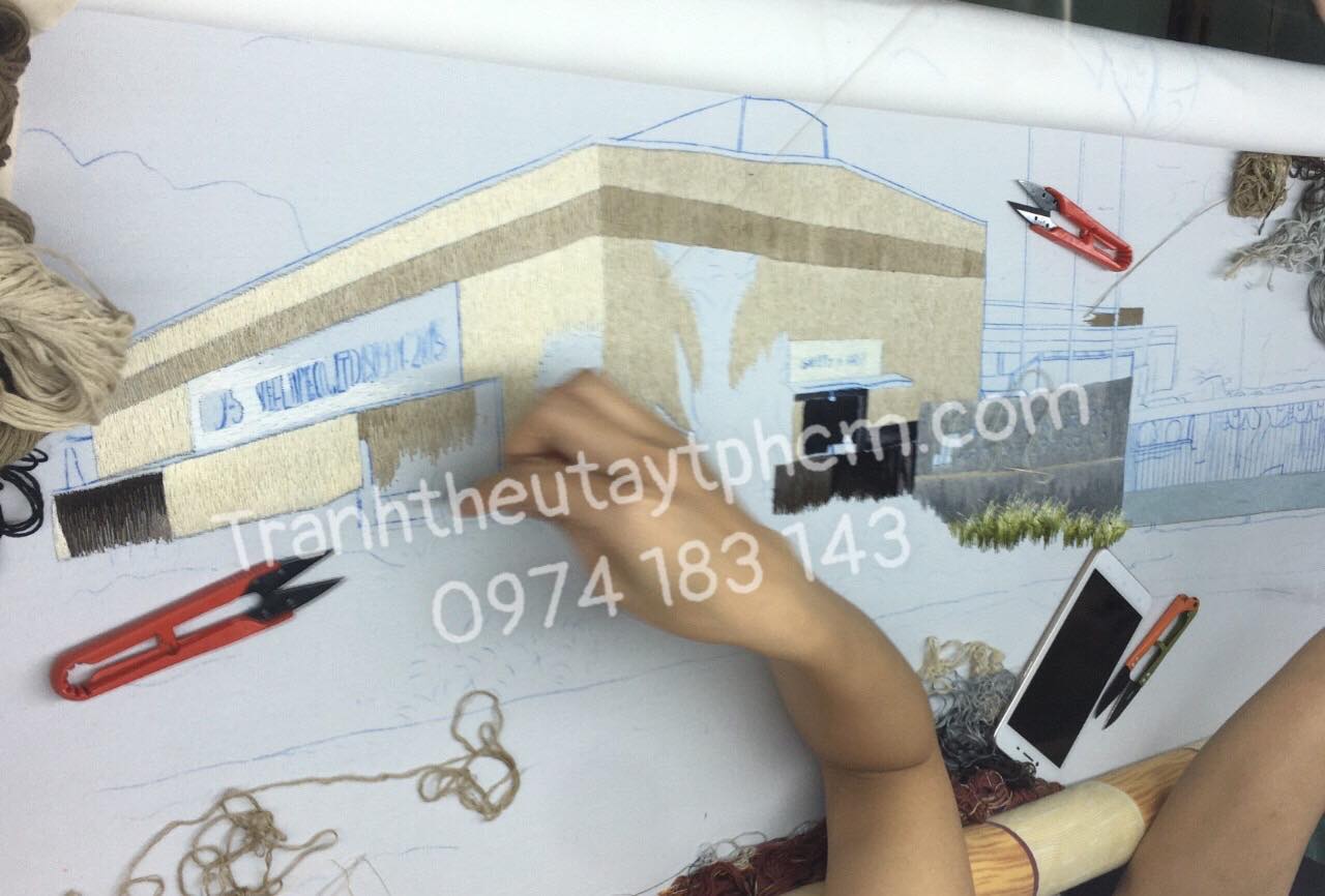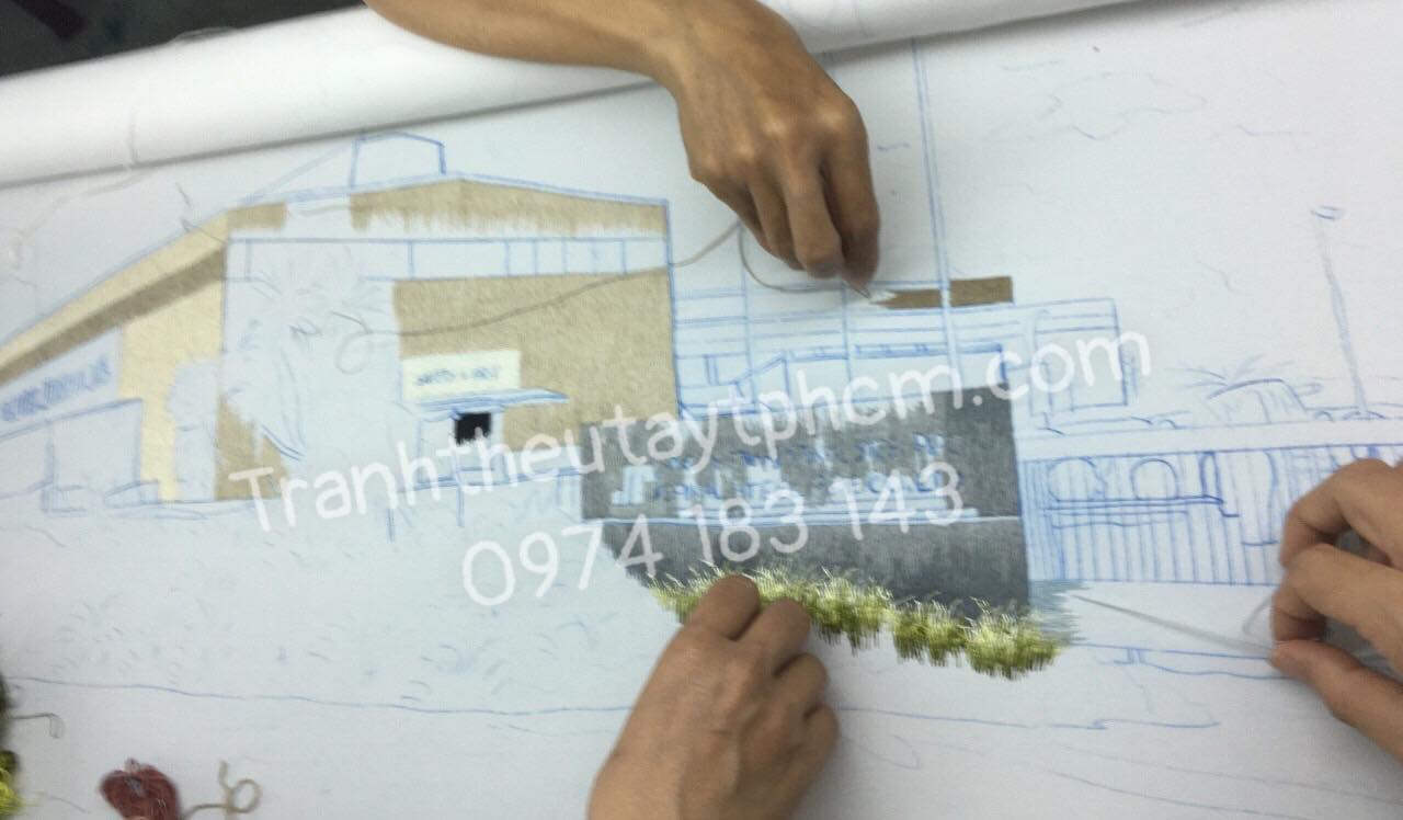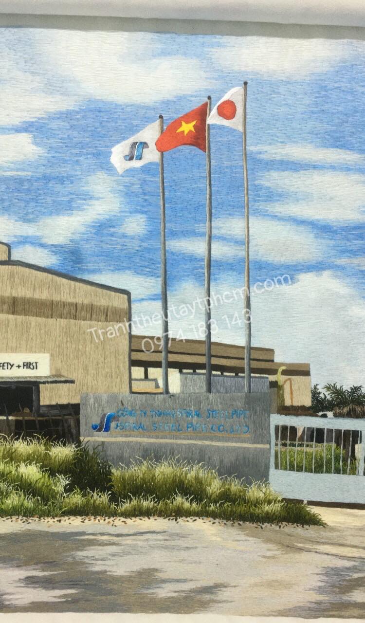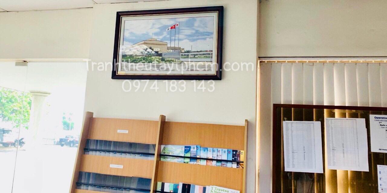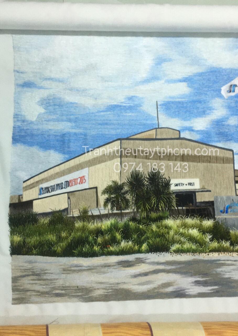 Tranh thêu nhà máy theo yêu cầu.