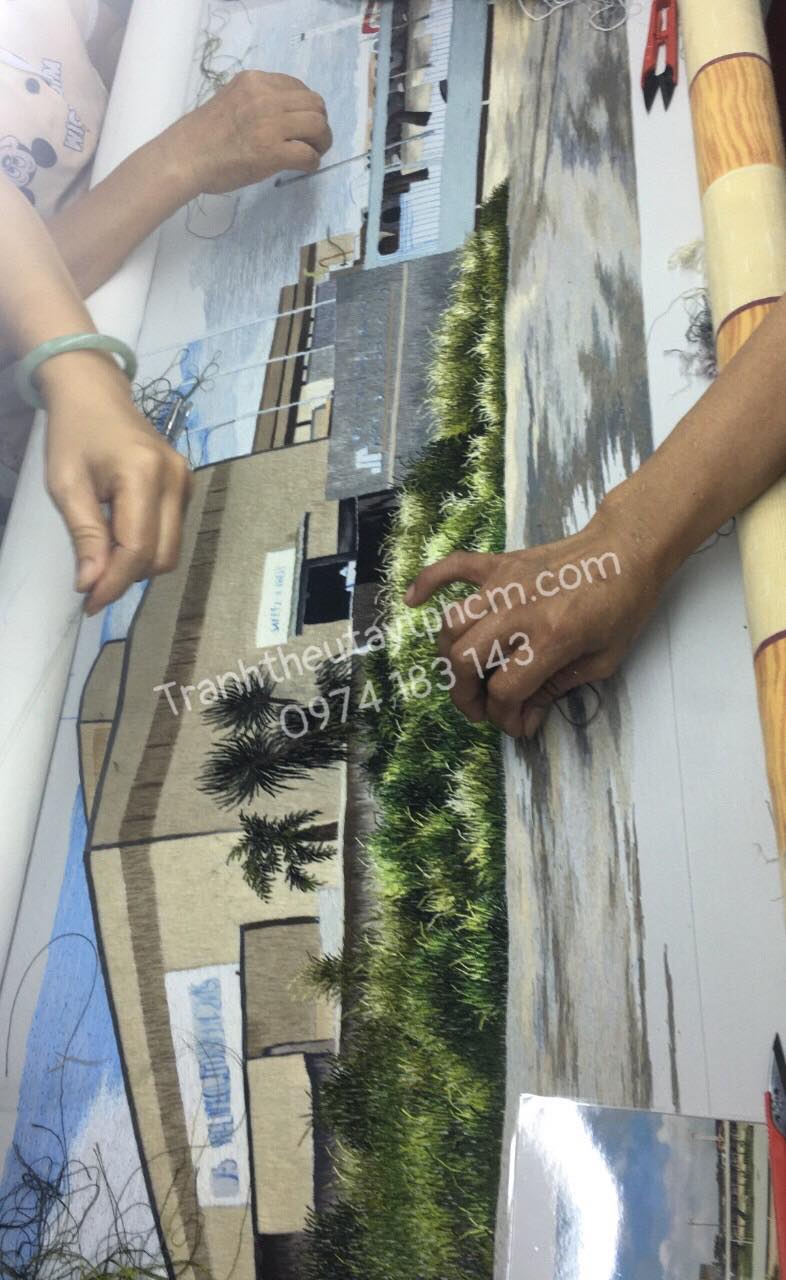 Tranh thêu nhà máy theo yêu cầu của chị Linh