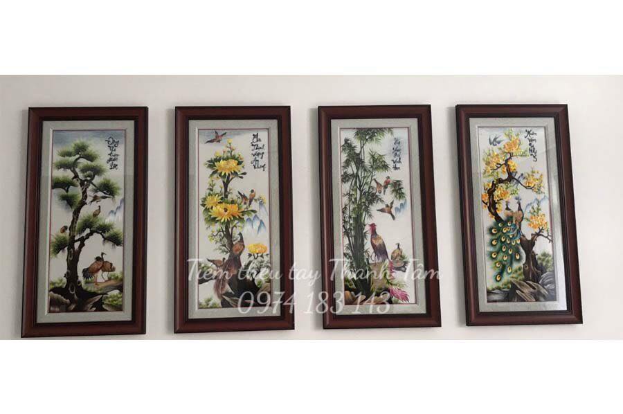 Tranh thêu tứ bình tùng cúc trúc mai được anh Sang ở quận 2 chọn treo phòng khách