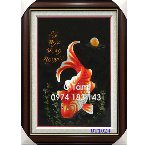 TRANH THÊU CÁ CHÉP HOA SEN OT 1024