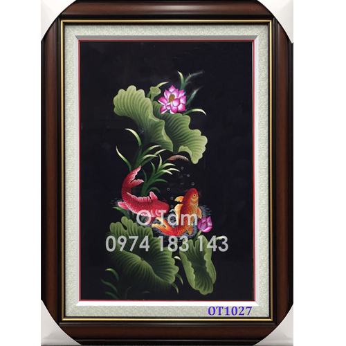 Tranh thêu cá chép hoa sen OT 1027