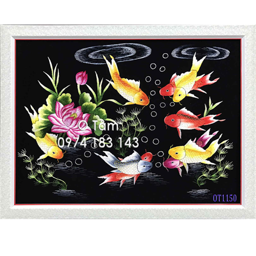 Tranh thêu cá chép hoa sen OT 1150
