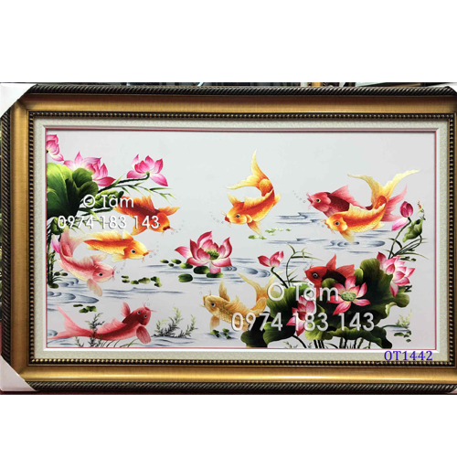 Tranh thêu cá chép hoa sen OT 1442