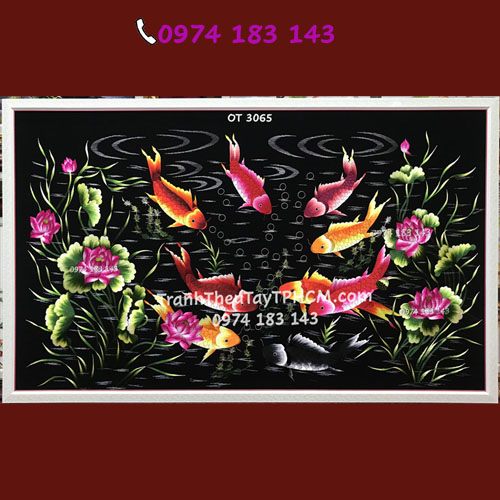 Tranh thêu cá chép hoa sen OT 3065
