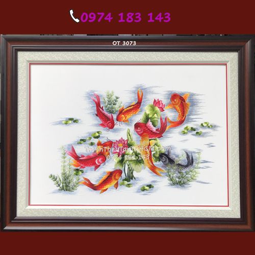 Tranh thêu cá chép hoa sen OT 3073