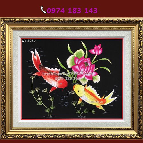 Tranh thêu Cá chép hoa sen OT 3089