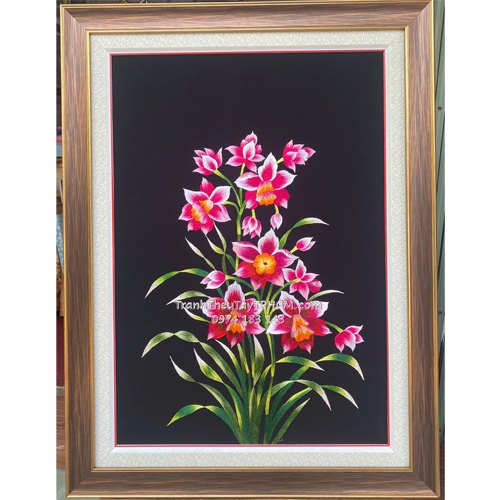 Tranh thêu hoa lan hồng khoe sắc