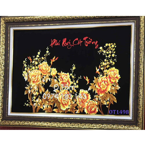 Tranh thêu hoa mẫu đơn được thêu bởi nghệ nhân giỏi, thêu bằng chỉ tơ trên nền vải lụa
