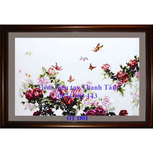 Tranh thêu hoa mẫu đơn được thêu bởi nghệ nhân giỏi, thêu bằng chỉ tơ trên nền vải lụa