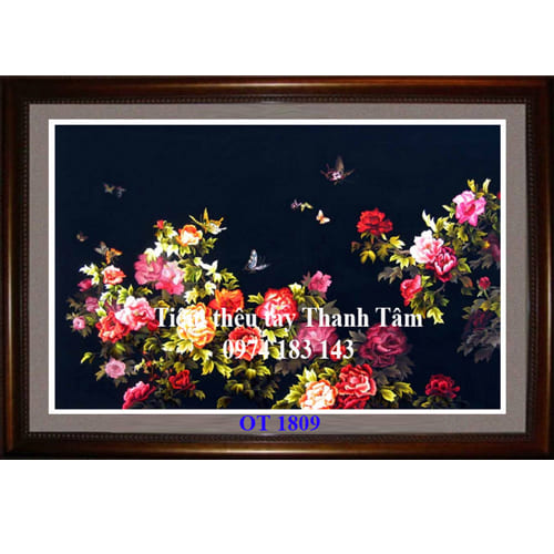 Tranh thêu hoa mẫu đơn được thêu bởi nghệ nhân giỏi, thêu bằng chỉ tơ trên nền vải lụa