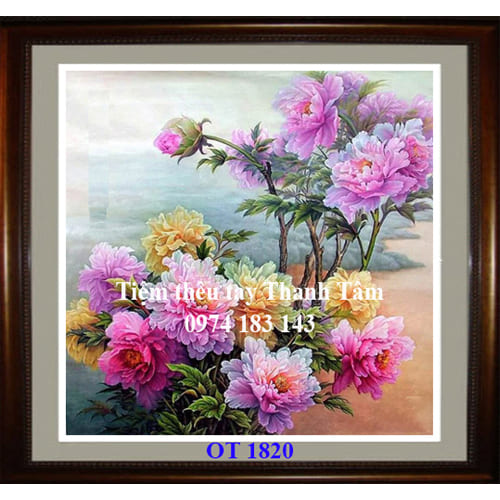 Tranh thêu hoa mẫu đơn được thêu bởi nghệ nhân giỏi, thêu bằng chỉ tơ trên nền vải lụa