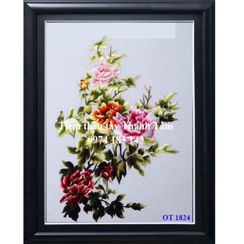 Tranh thêu hoa mẫu đơn được thêu bởi nghệ nhân giỏi, thêu bằng chỉ tơ trên nền vải lụa