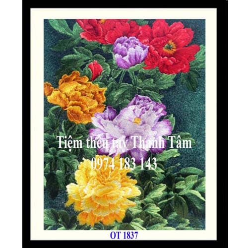 Tranh thêu hoa mẫu đơn được thêu bởi nghệ nhân giỏi, thêu bằng chỉ tơ trên nền vải lụa