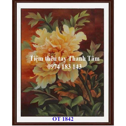 Tranh thêu hoa mẫu đơn được thêu bởi nghệ nhân giỏi, thêu bằng chỉ tơ trên nền vải lụa