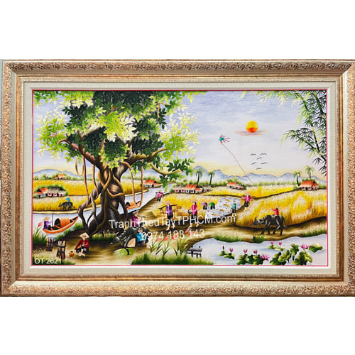 Tranh thêu làng quê OT 2621
