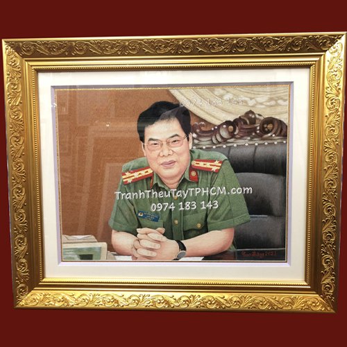 Tranh thêu chân dung Đại Tá Vũ Hồng Quang giám đốc công an tỉnh Cao Bằng
