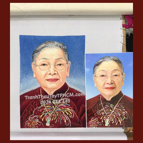 Tranh thêu chân dung mẹ chị Hà ở Đà Nẵng thêu theo yêu cầu