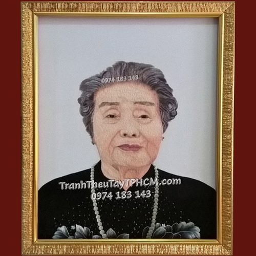 Tranh thêu chân dung mẹ tổng giám đốc nhôm kính Phi Kha