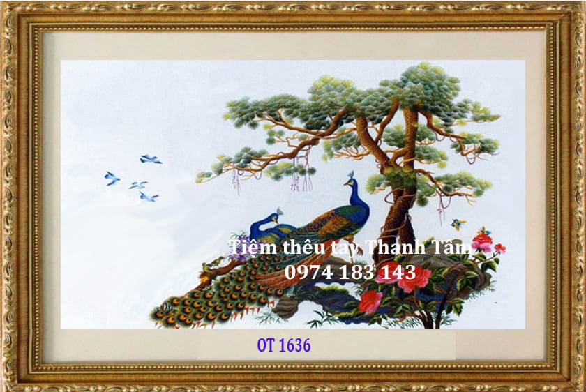 Tranh thêu chim công thể hiện sức mạnh vô tận của trái đất, của thiên nhiên biểu tượng cho sức mạnh cơ hội mới. Treo một bức tranh chim công hay một chiếc bình cắm lông công trang trí huy hoàng là biện pháp xua đi luồng khi xấu mang lại vượng khí cho văn phòng lại đẹp về mặt thẩm mỹ.