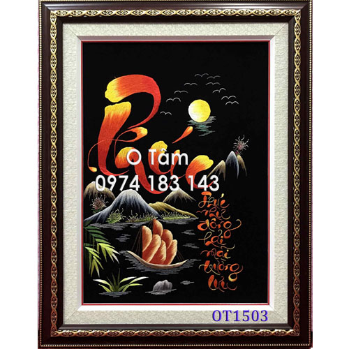 Tranh thêu chữ phúc được thêu bằng chỉ tơ trên nền vải lụa, thêu 100% bằng tay bởi nghệ nhân giỏi và kinh nghiệm