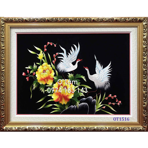 Tranh thêu tùng hạc được thêu bằng chỉ tơ trên nền vải lụa, thêu 100% bằng tay bởi nghệ nhân giỏi và kinh nghiệm
