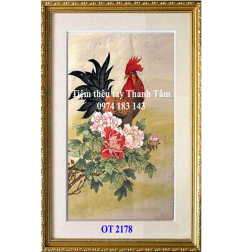 Tranh thêu gà trống ngoài ý tượng trưng cho sự no đủ ,sức khỏe dồi dào,vừa may mắn, cấm quỷ , trừ tà ma. Hình ảnh chú gà trống oai vệ dùng dũng biểu thị cho sức sống và thịnh vượng.