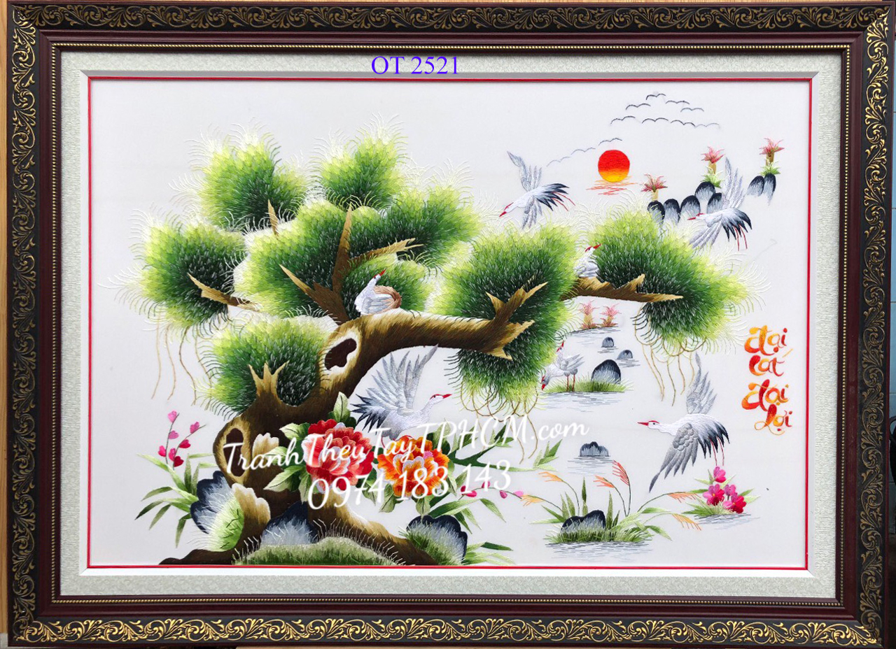 Tranh thêu tùng hạc diên niên biểu tượng cho thịnh vượng, trường thọ có ý nghĩa rất tốt.