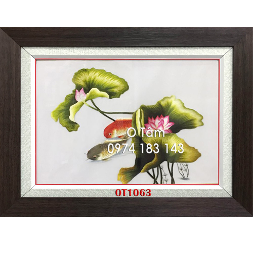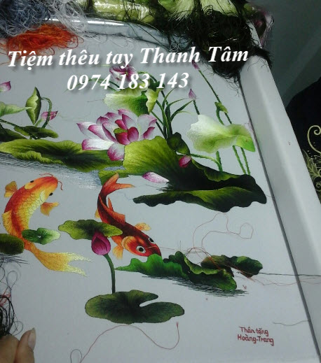 Liên hệ đặt tranh thêu cá chép hoa sen theo yêu cầu 0974183143