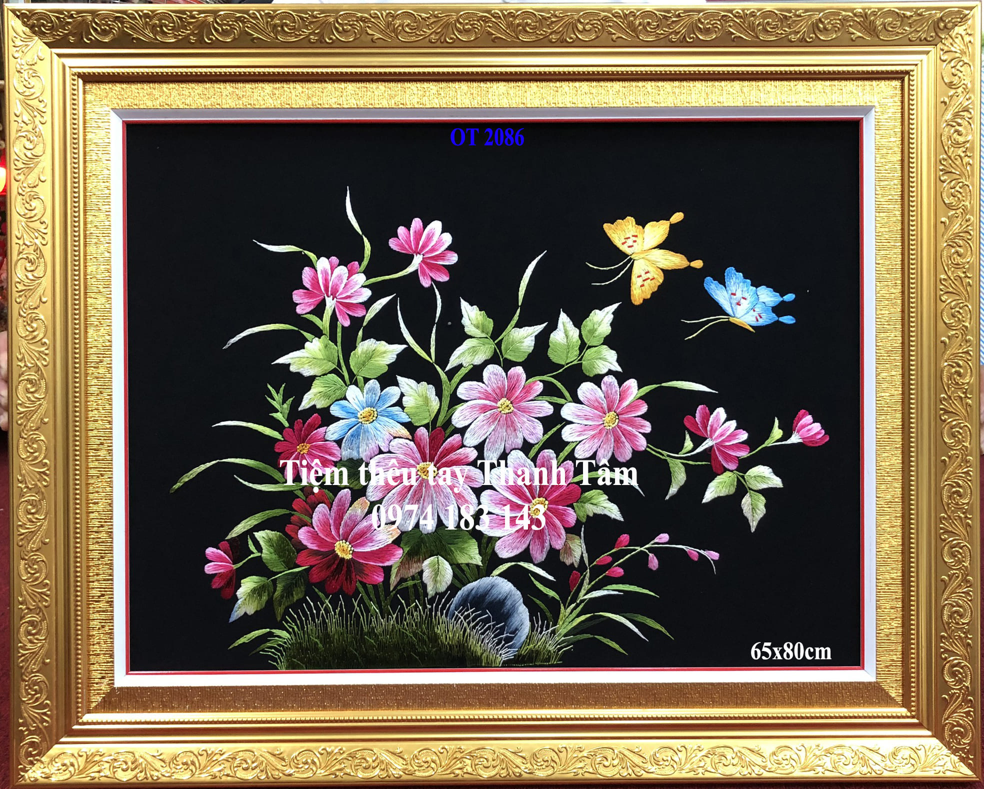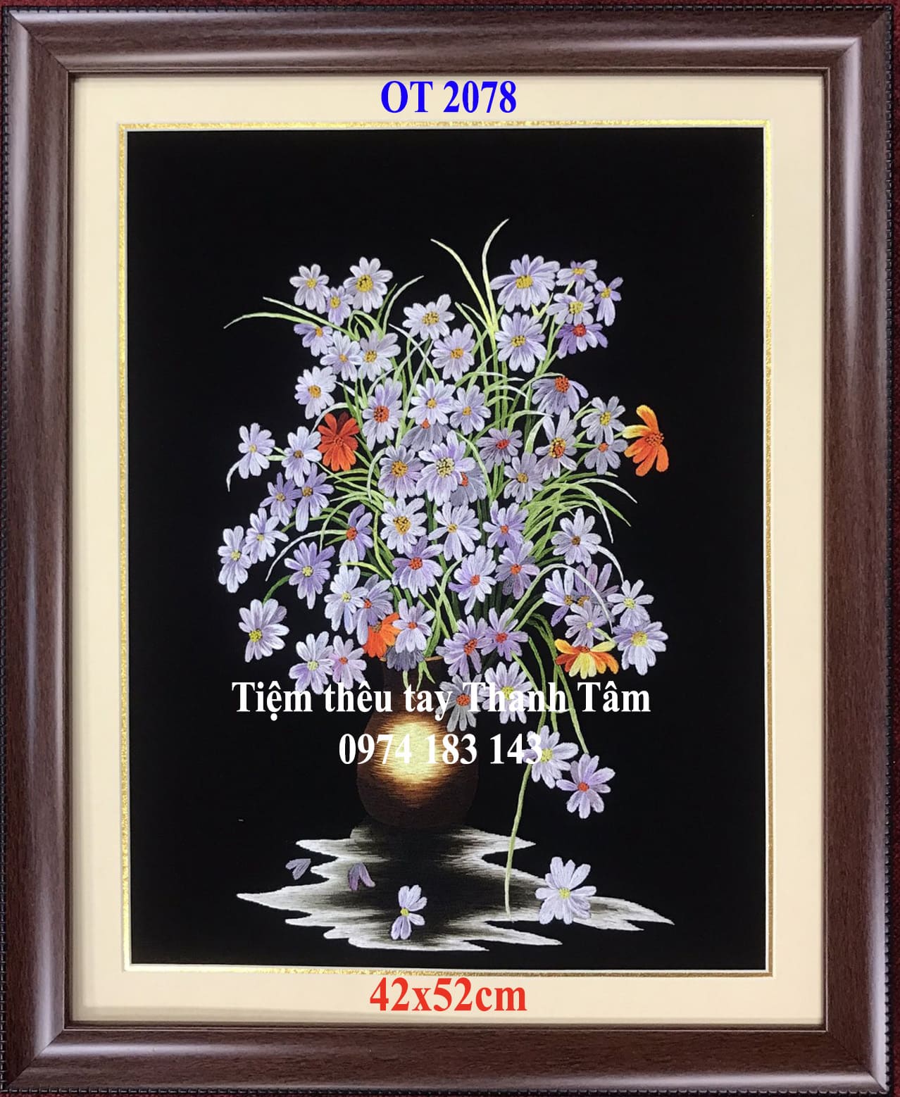 Tranh thêu hoa cúc – loài hoa được người ta yêu mến bởi vẻ mộc mạc, giản đơn và biết bao gần gũi. Không chỉ là nét ngây thơ trong sáng của những đóa cúc nhỏ nhắn, trắng xinh; mà còn là niềm vui tươi, rạng rỡ của những đóa cúc đa sắc màu.