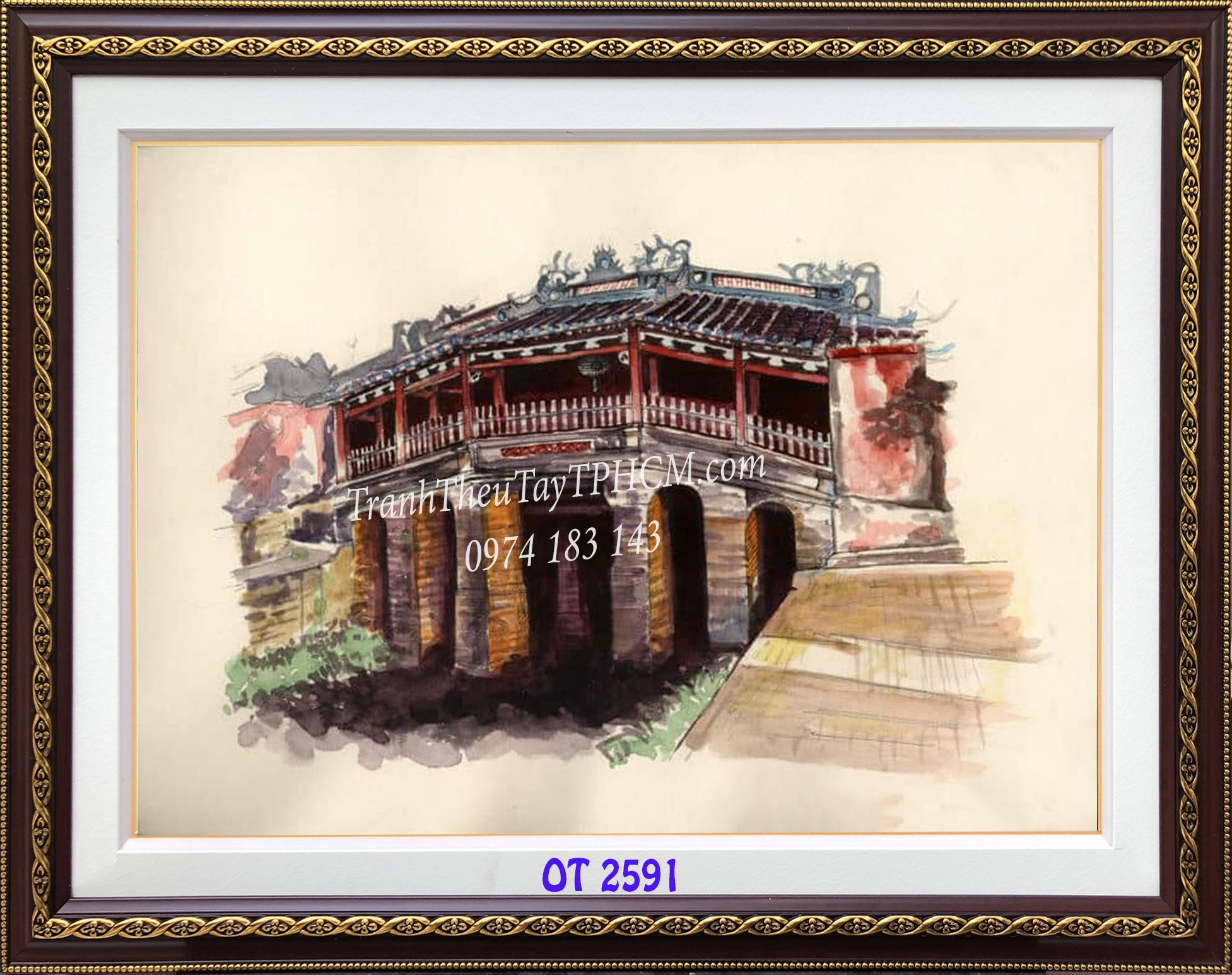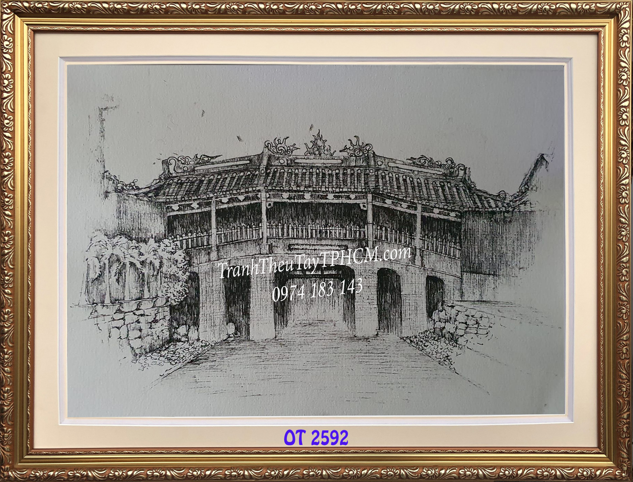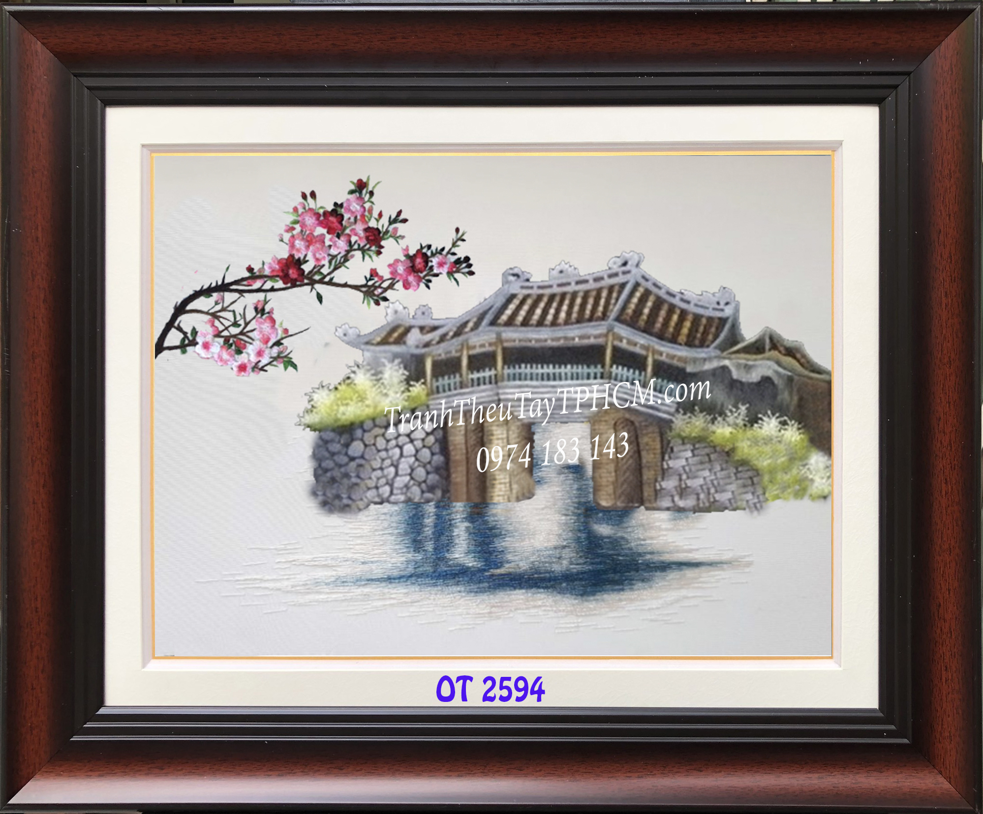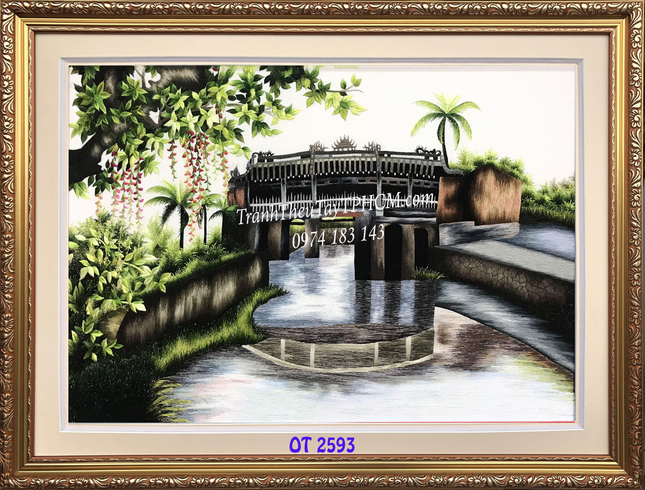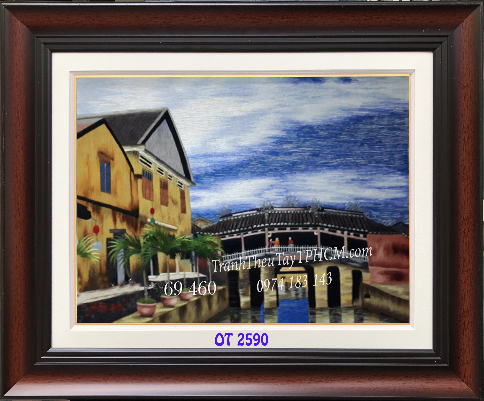 Liên hệ đặt tranh thêu Chùa Cầu - Hội An theo yêu cầu: 0974 183 143