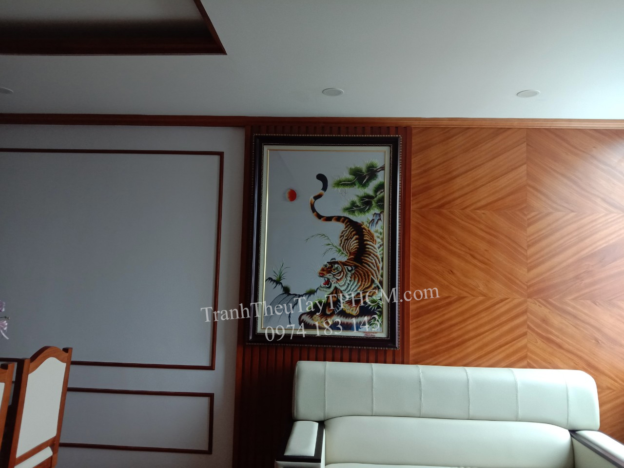 Tranh thêu con hổ không chỉ mang lại ý nghĩa phong thủy mà còn là một tác phẩm nghệ thuật tinh tế. Từng đường kim, mũi chỉ đều được các nghệ nhân thực hiện tỉ mỉ, tái hiện lại hình ảnh oai phong và sống động của con hổ. Bức tranh vừa thể hiện được sự mạnh mẽ, dũng mãnh của con hổ, vừa mang đến cảm giác sang trọng và uy nghiêm cho không gian.
