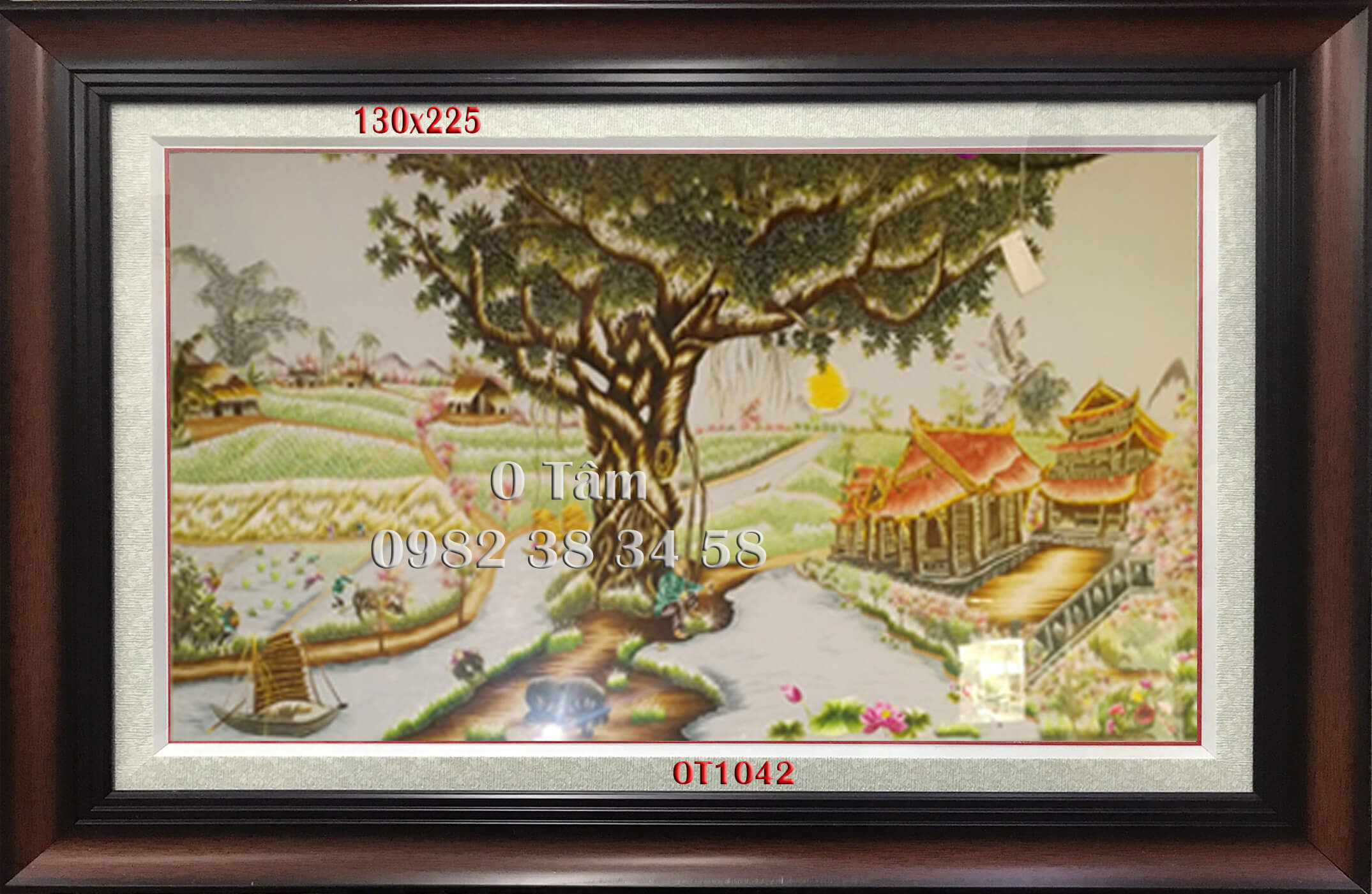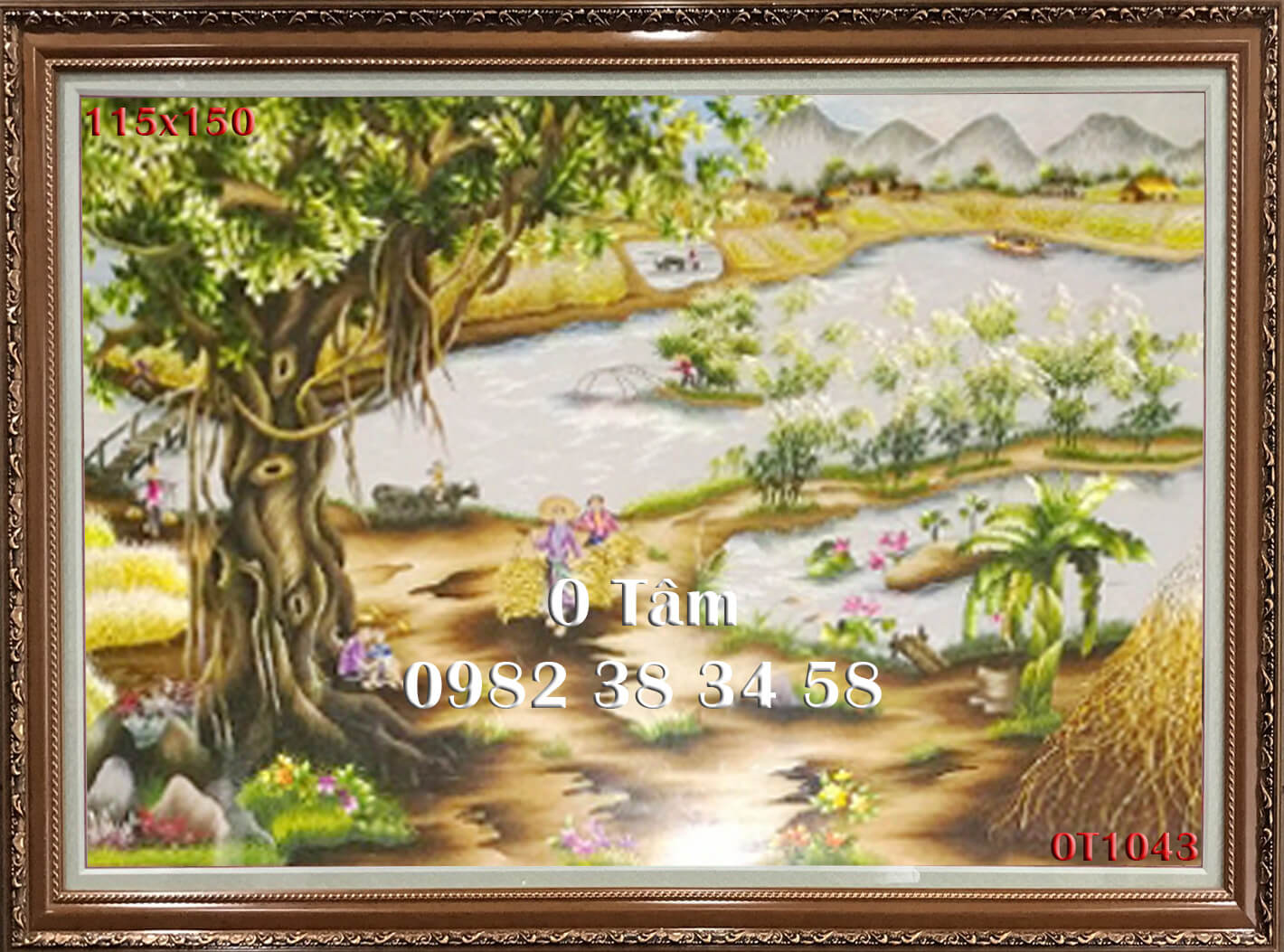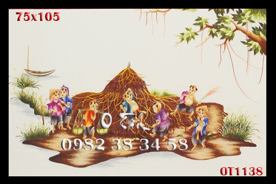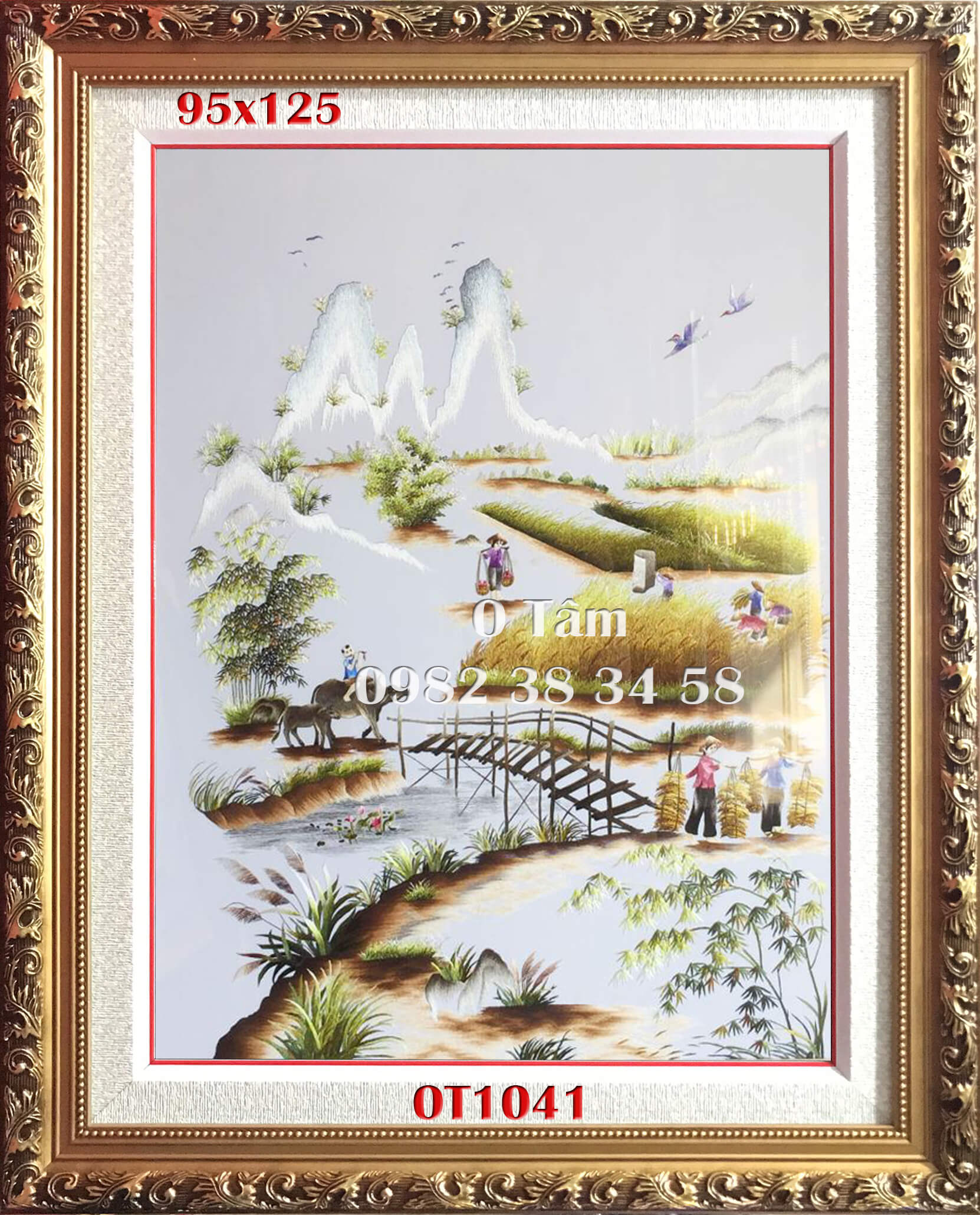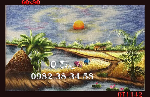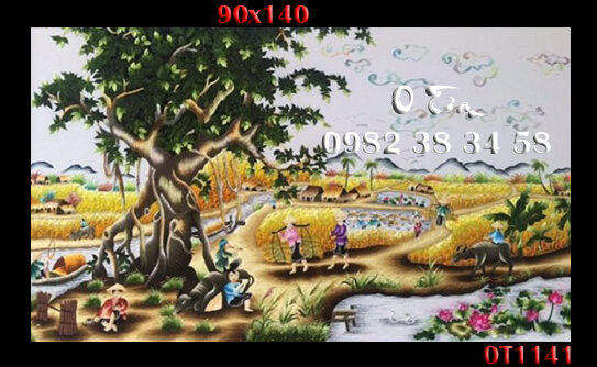tranh thêu đồng quê được thêu hoàn toàn bằng tay bởi nghệ nhân xứ Huế, thêu 100% bằng tay