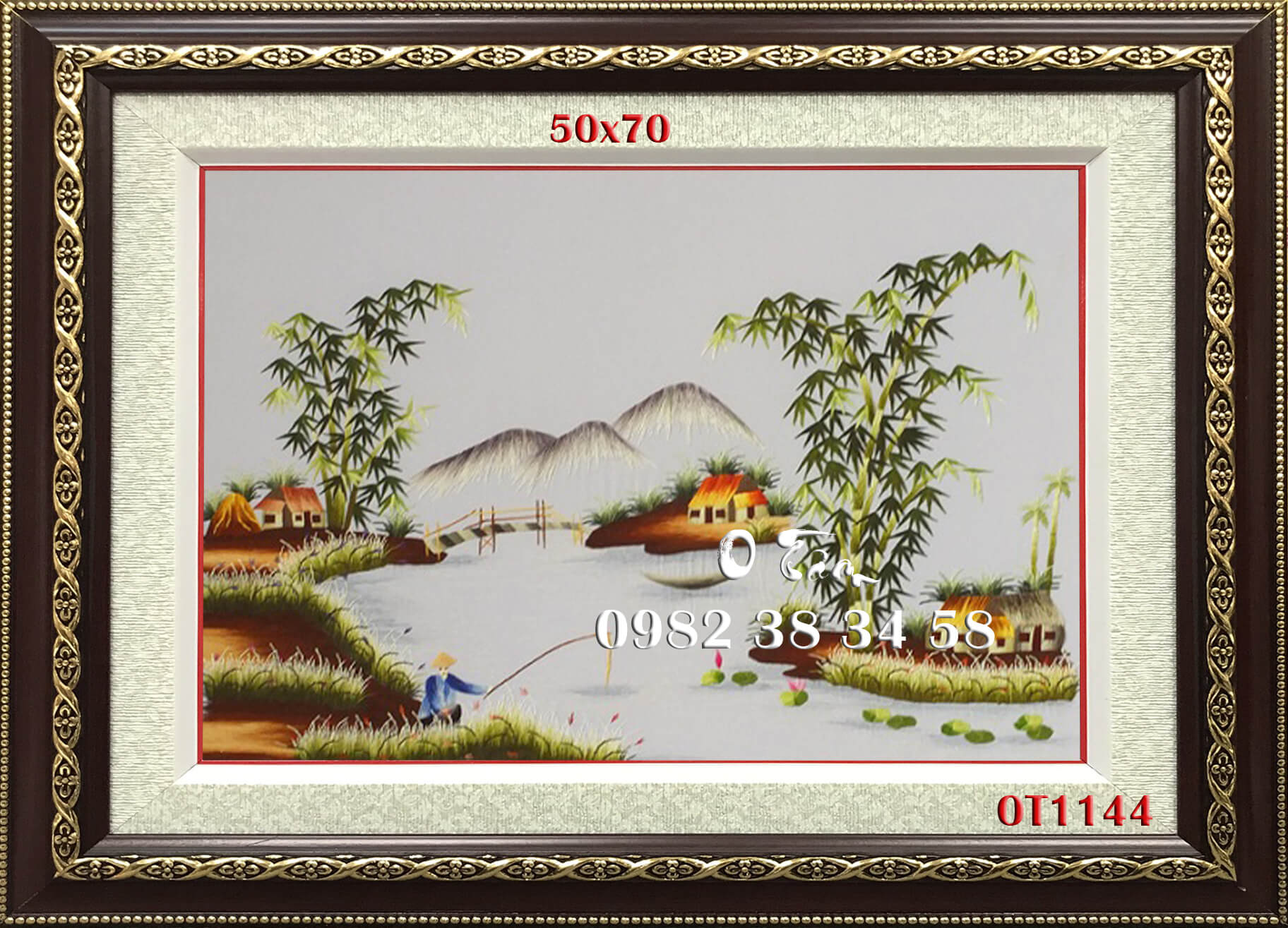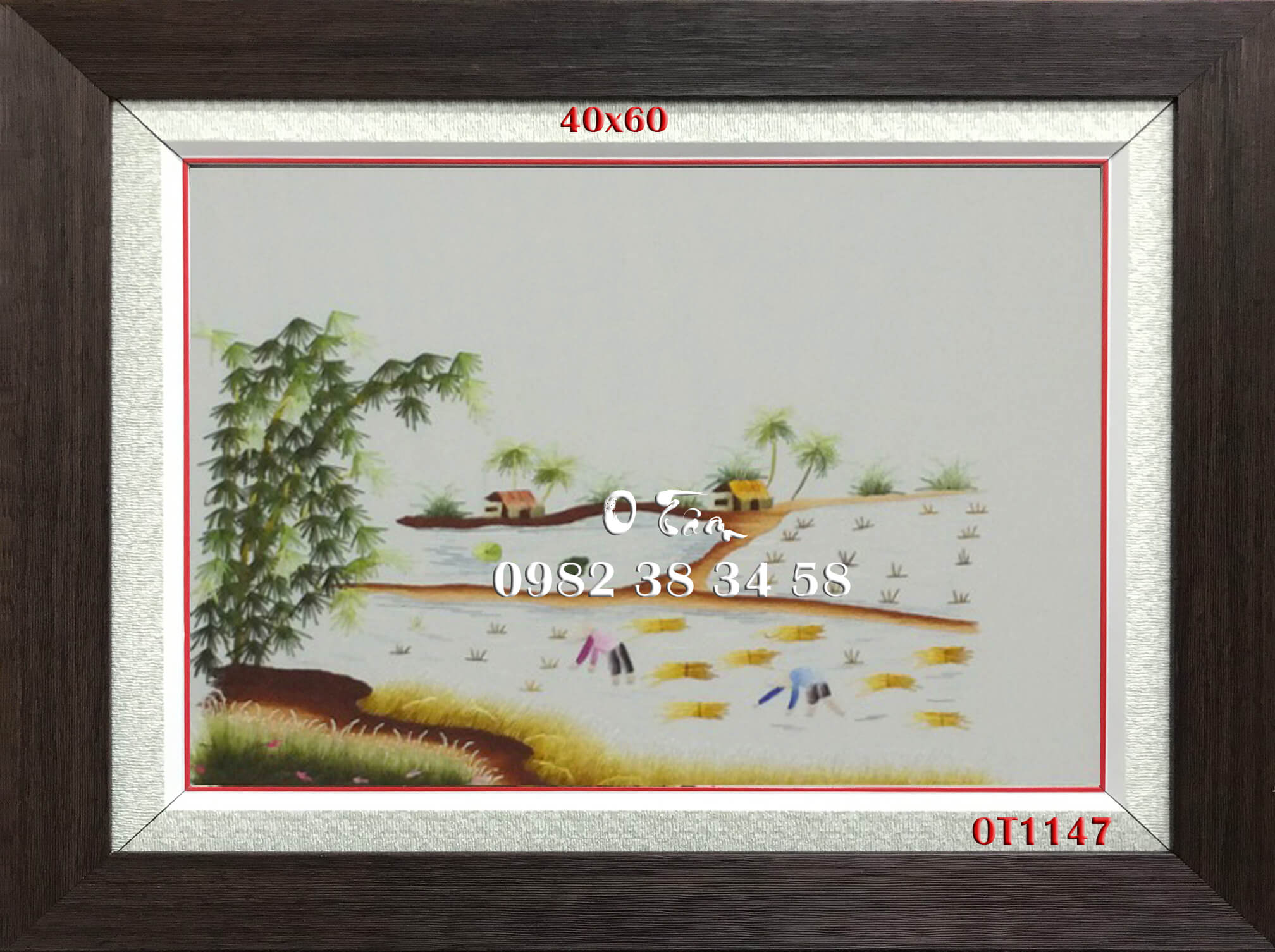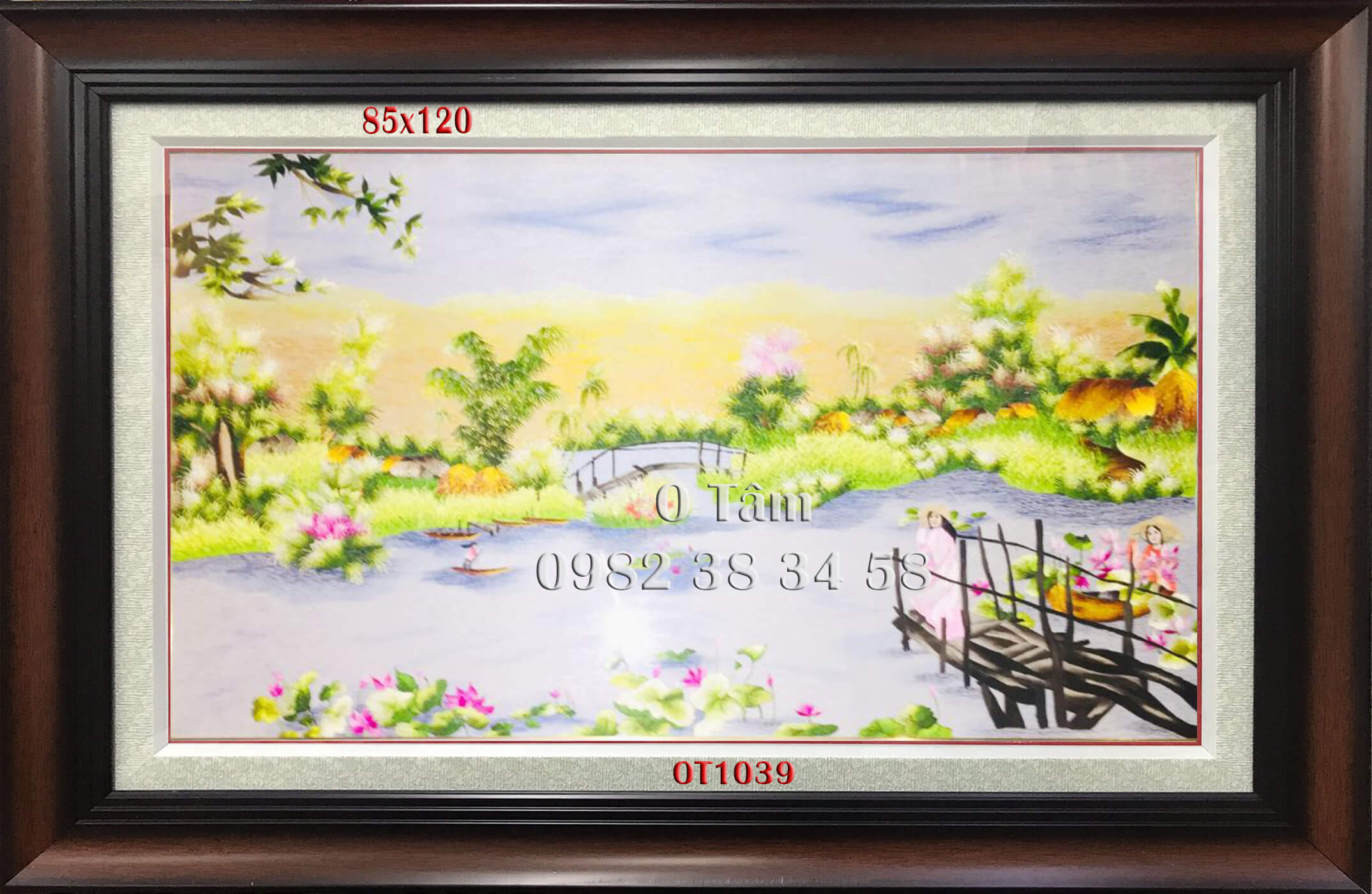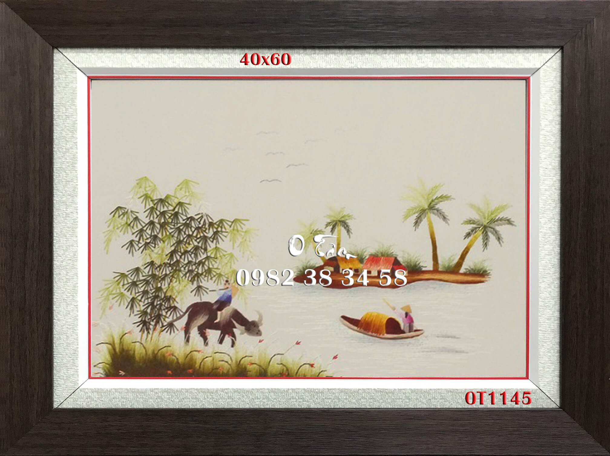 tranh thêu đồng quê được thêu hoàn toàn bằng tay bởi nghệ nhân xứ Huế, thêu 100% bằng tay