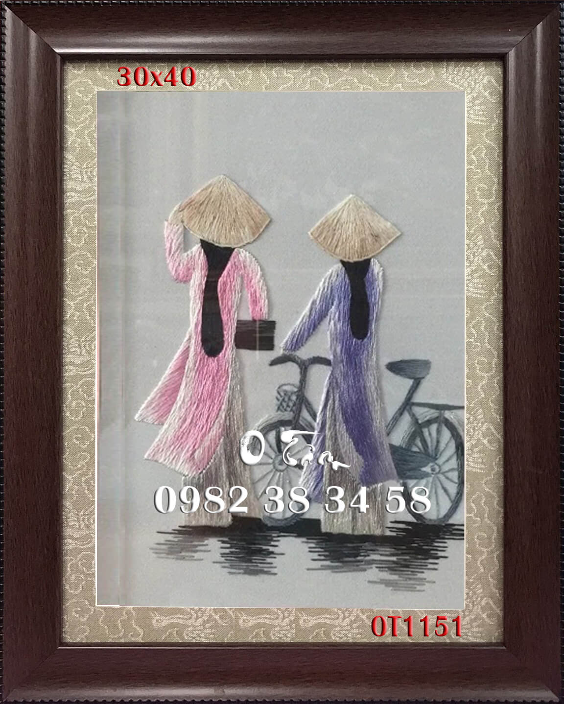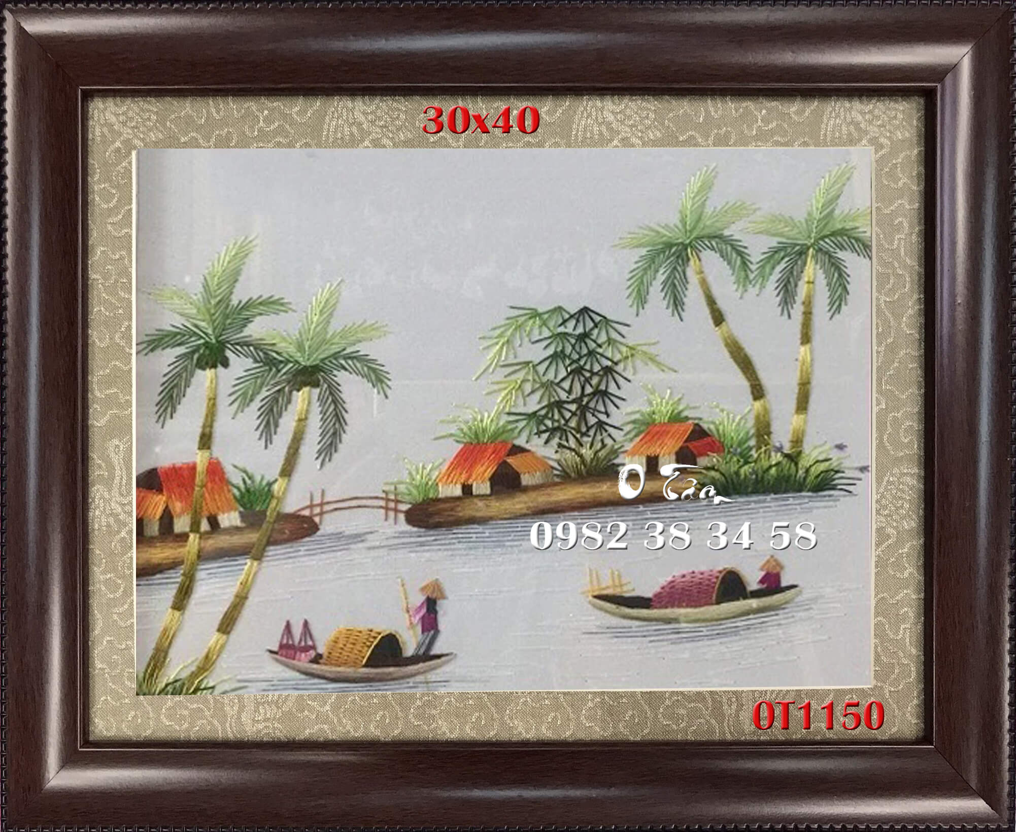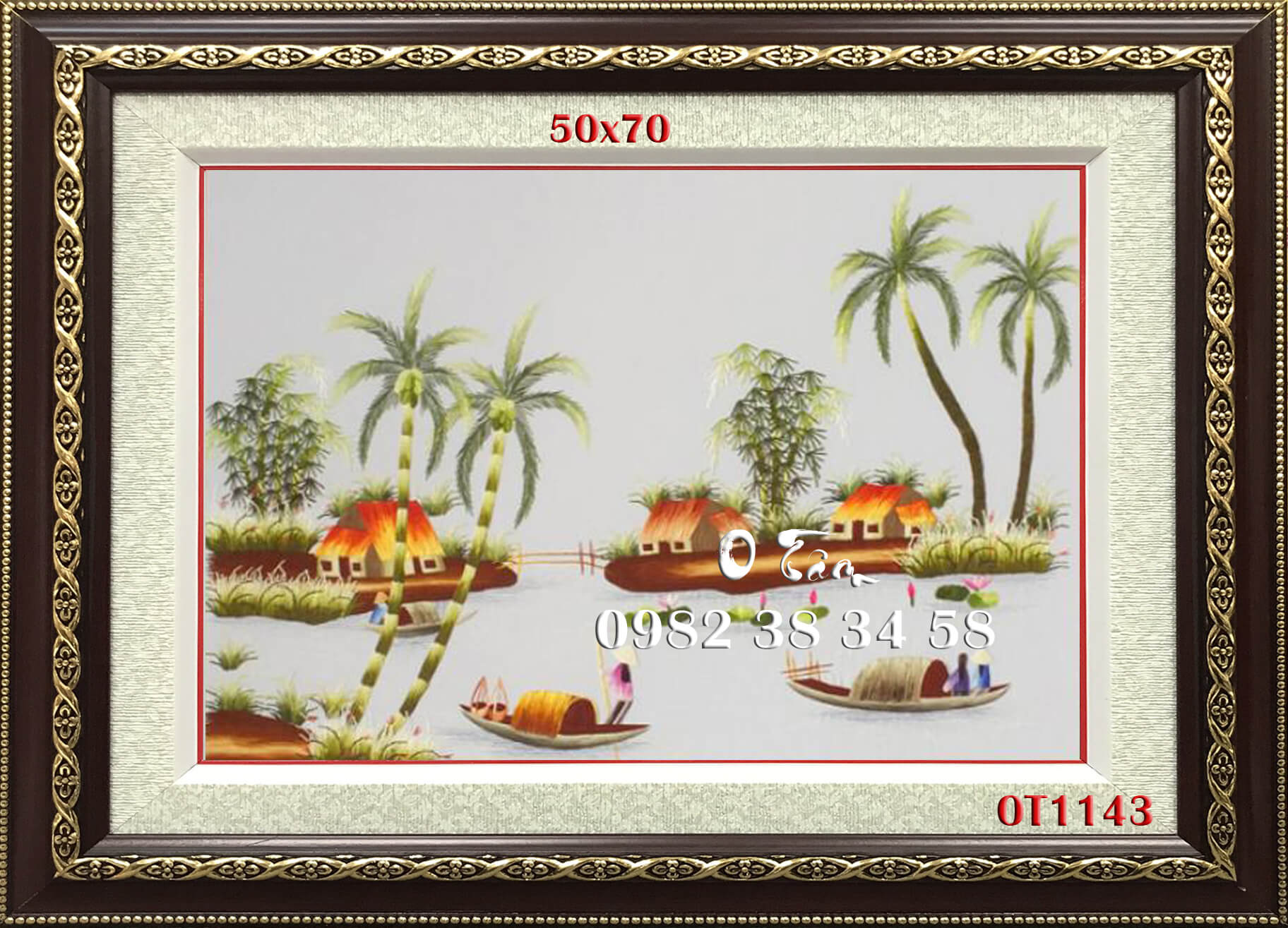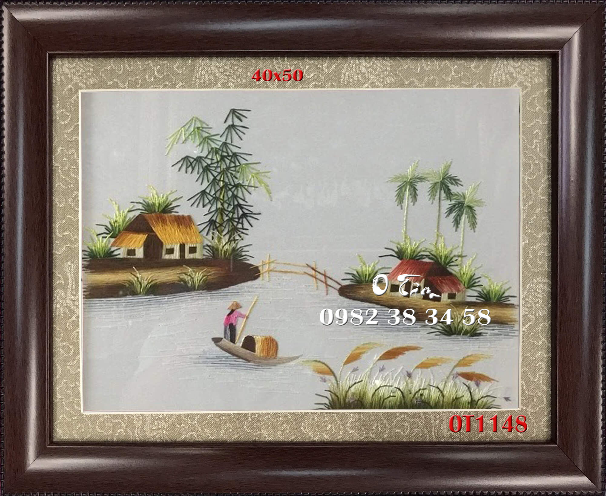 tranh thêu đồng quê được thêu hoàn toàn bằng tay bởi nghệ nhân xứ Huế, thêu 100% bằng tay