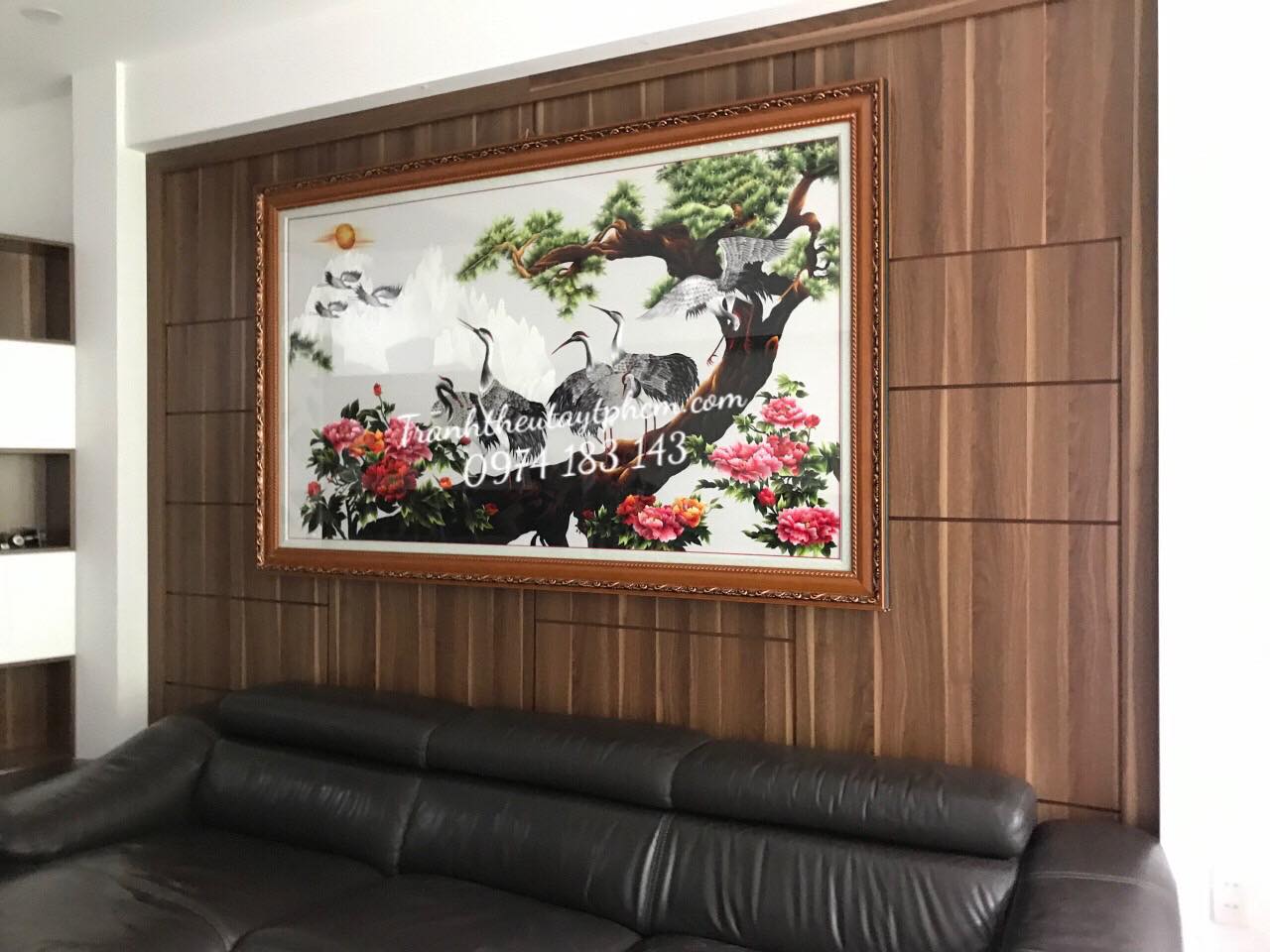 Treo tranh thêu tùng hạc hoa mẫu đơn mang đến may mắn cho bạn