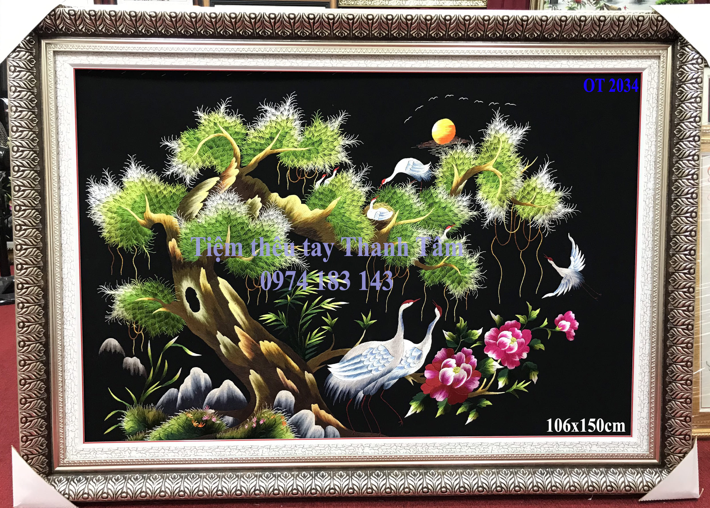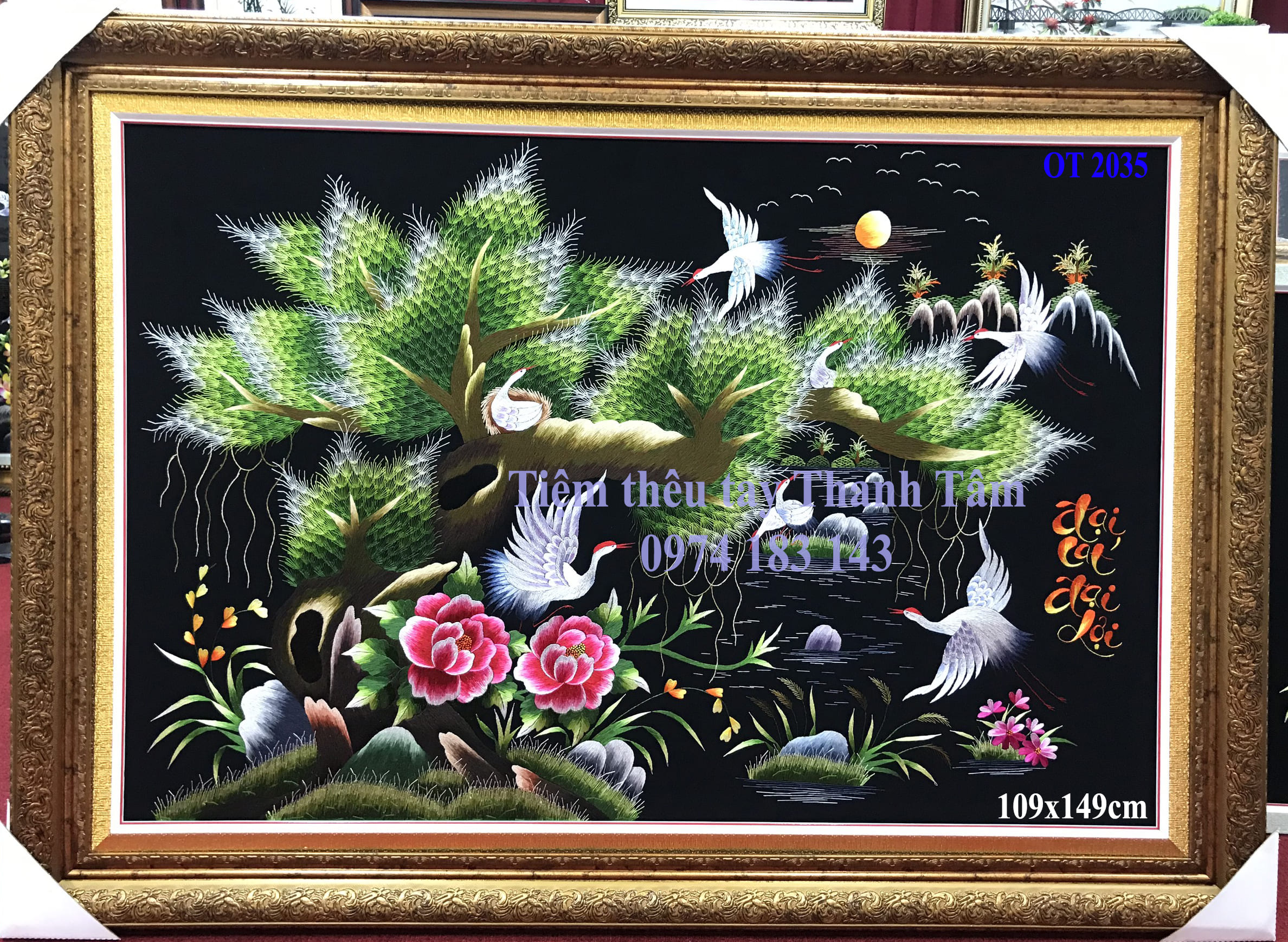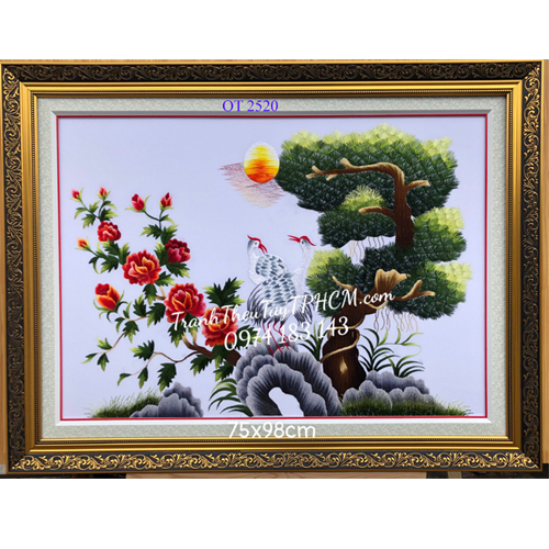Liên hệ đặt tranh thêu tùng hạc hoa mẫu đơn: 0974 183 143